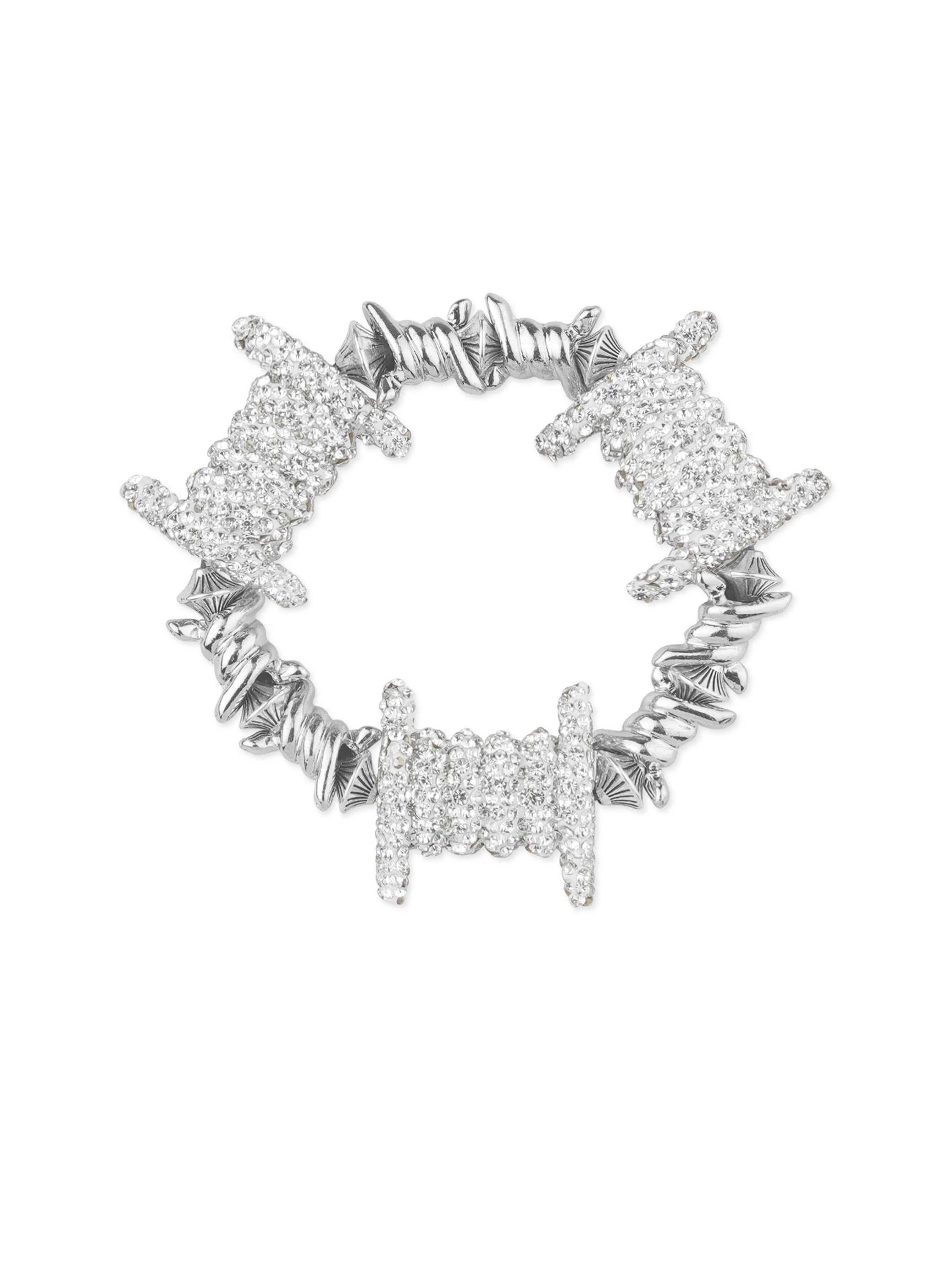 Diseñado en exclusiva por HOWSS, las unidades sobredimensionadas en forma de espina de BARBED WARDEN interrumpen la estructura circular, creando una tensión entre claridad y agresividad.