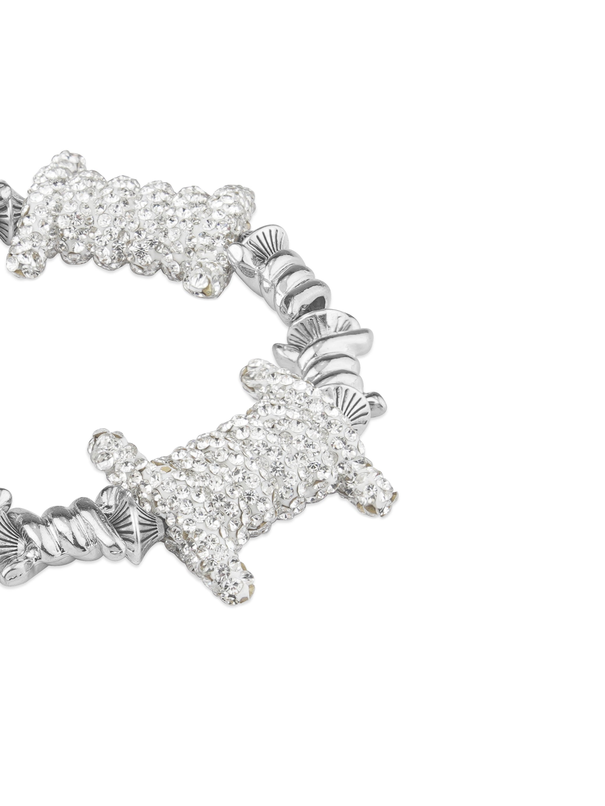 Cada eslabón redondo está engastado a mano con resina de calidad óptica, totalmente incrustada con cristales tipo strass transparentes para crear un brillo helado uniforme a lo largo de toda la cadena.