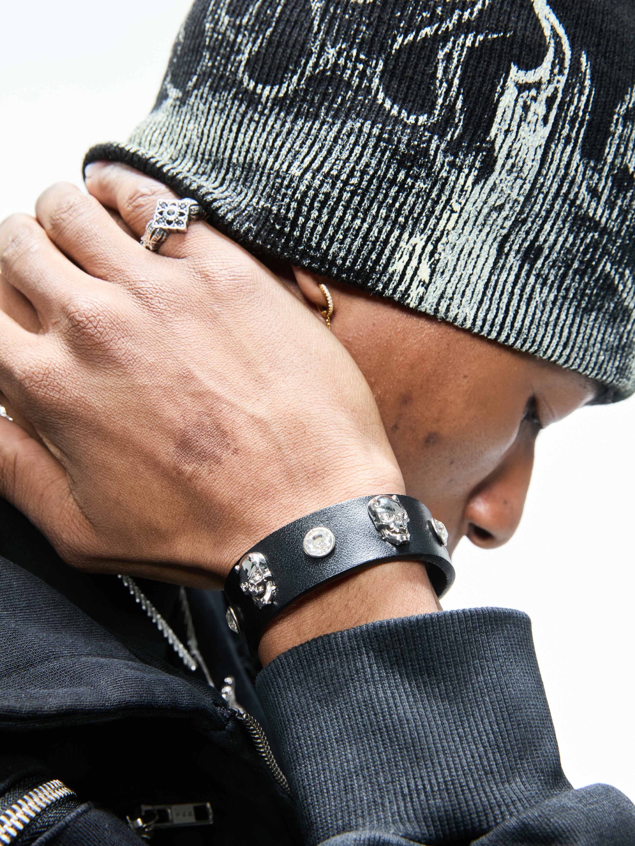 Diseñado en exclusiva por HOWSS, SKULLSTUD ES CUERO PURO CON UN TOQUE MORTAL.