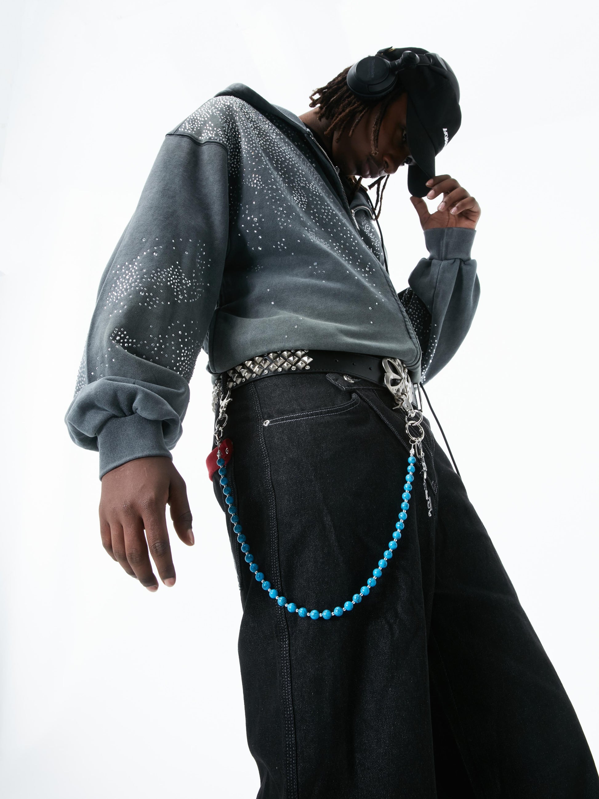 • Grandi perle di pietra blu come base della catena