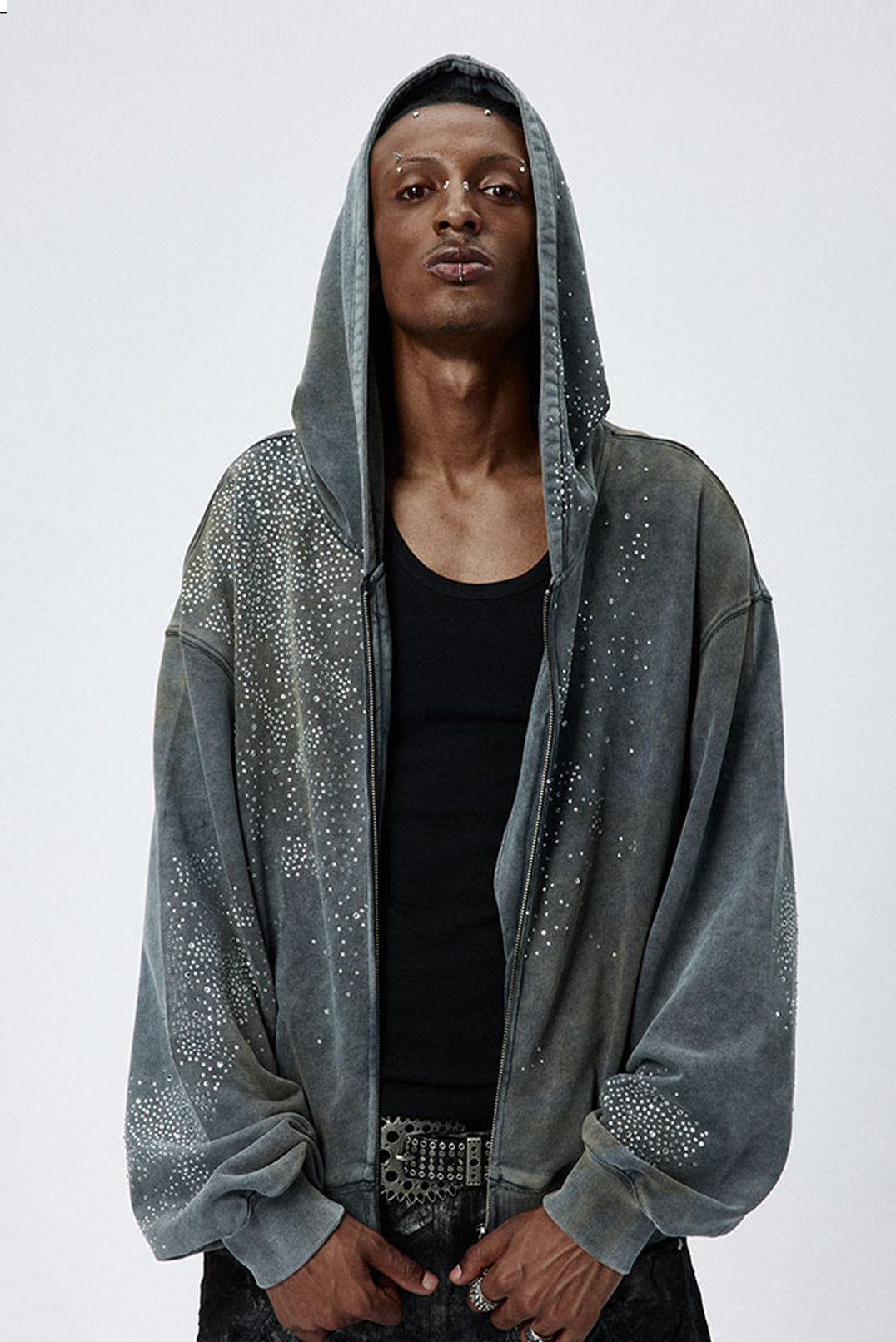 Si vede subito che è un capo lavato e fatto a mano di altissima qualità, ma sorprendentemente non è questo l’aspetto più impressionante di questo indumento. Quando la luce fa brillare i diamanti, tutto ciò che si sente sono persone che urlano: "Wow, che stile!"