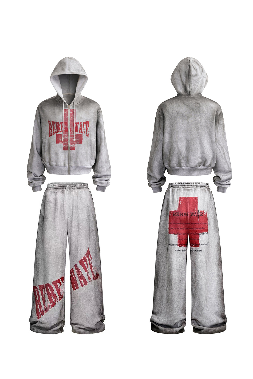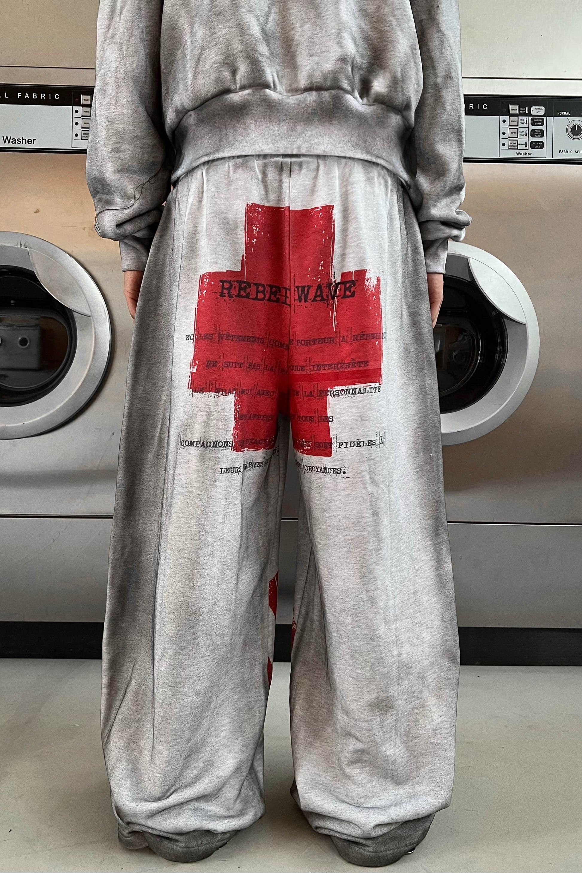 • Grafica a croce distintiva con tintura rossa reattiva che si fonde con la texture "puff"