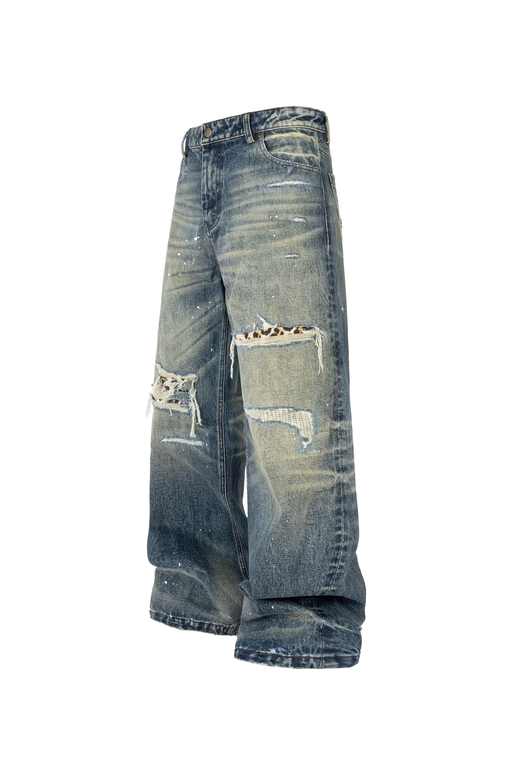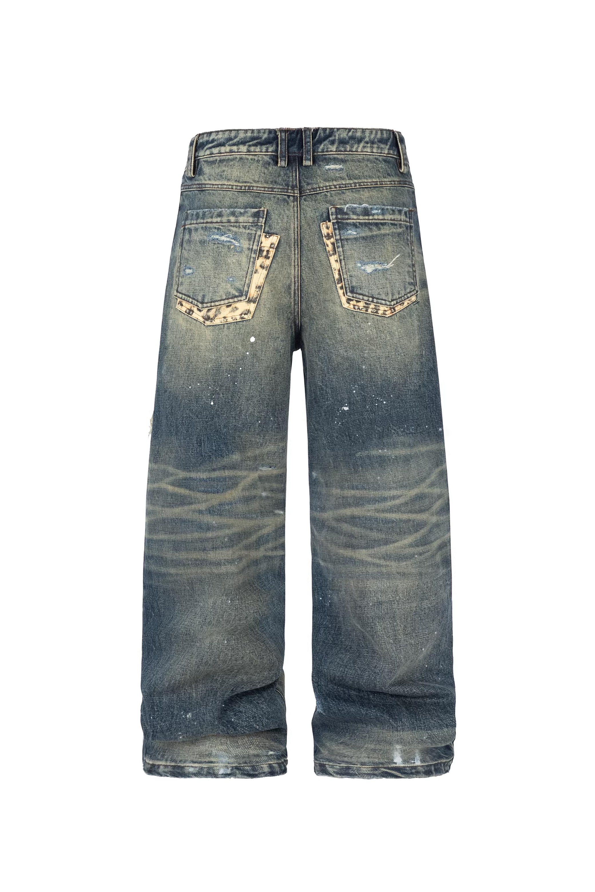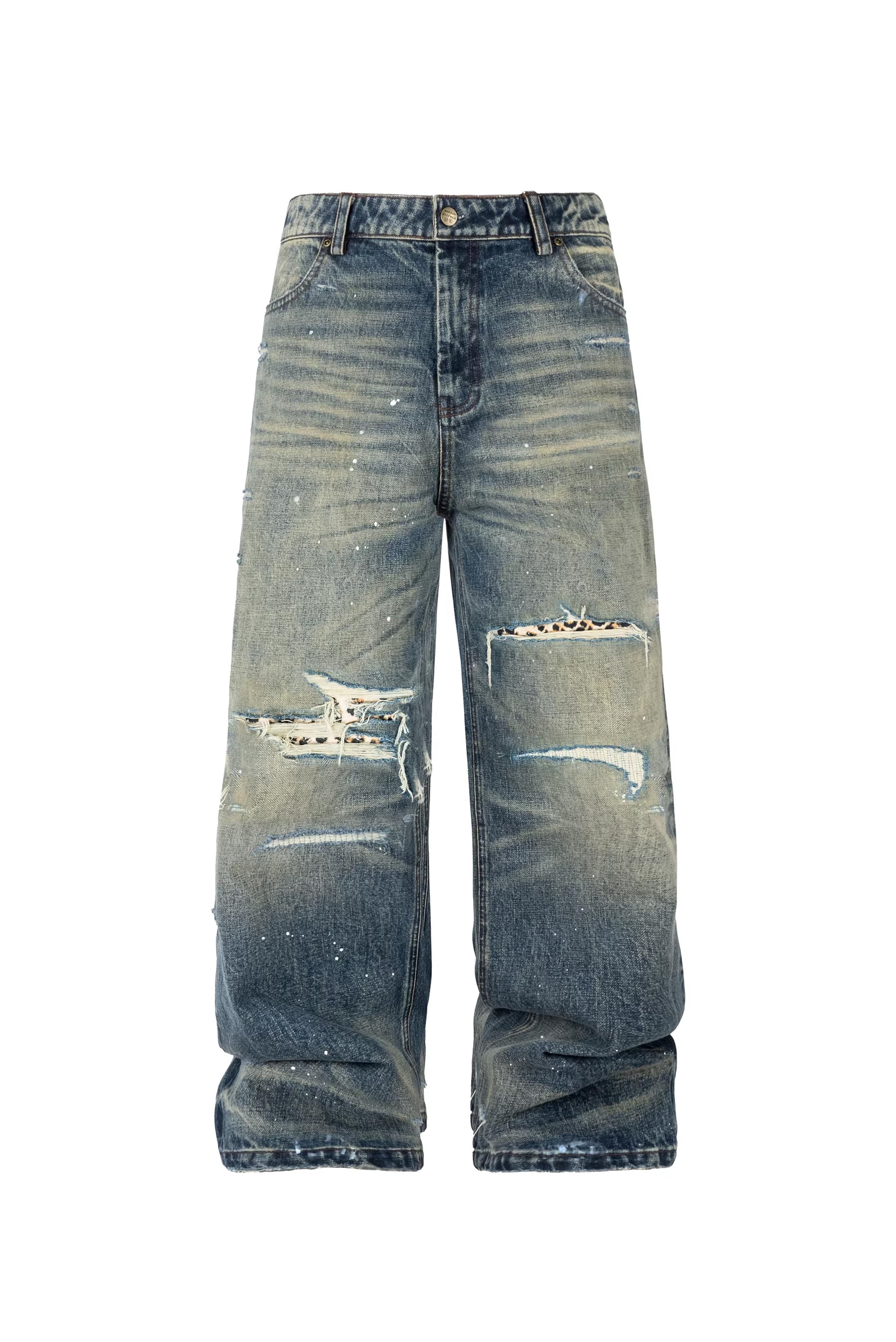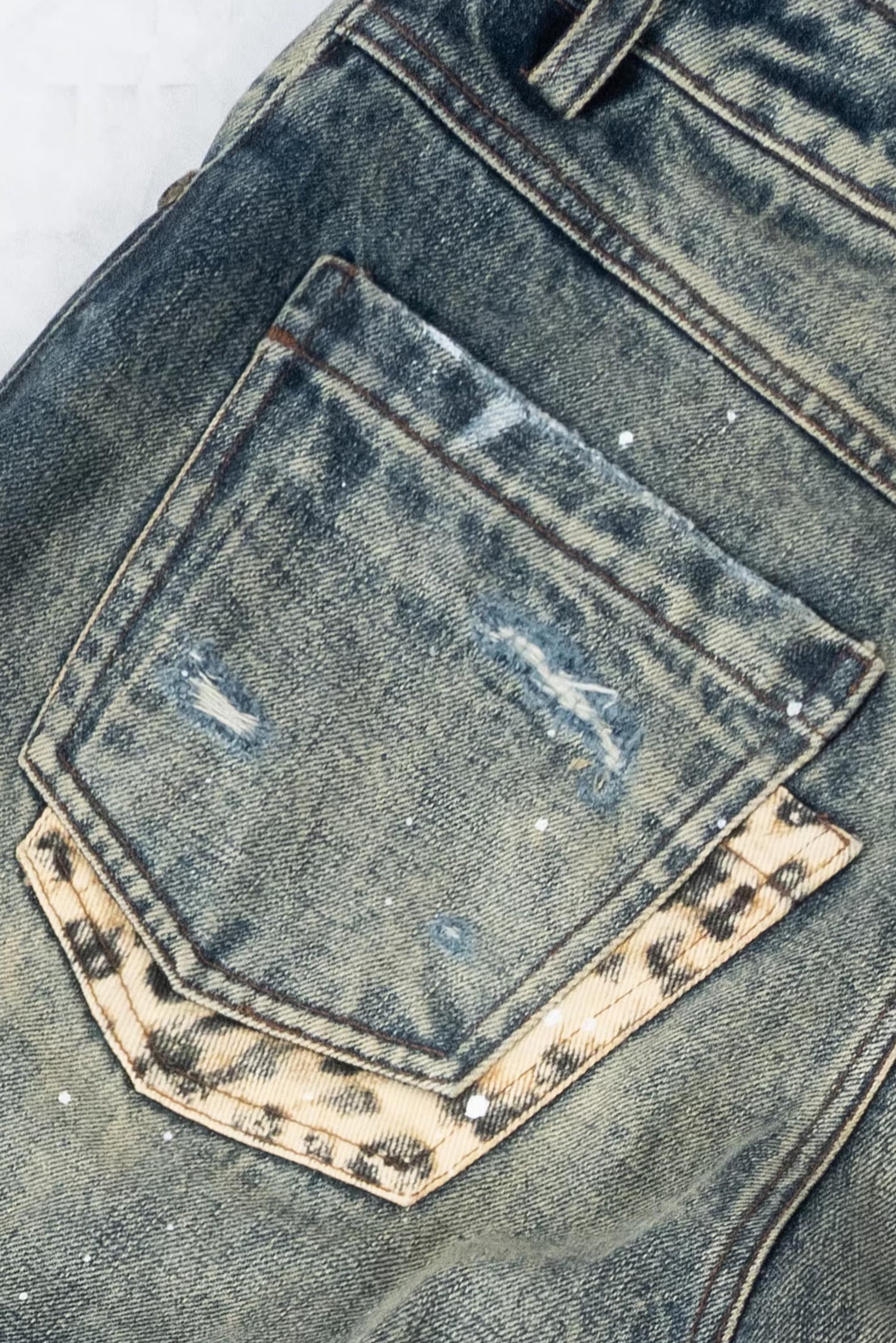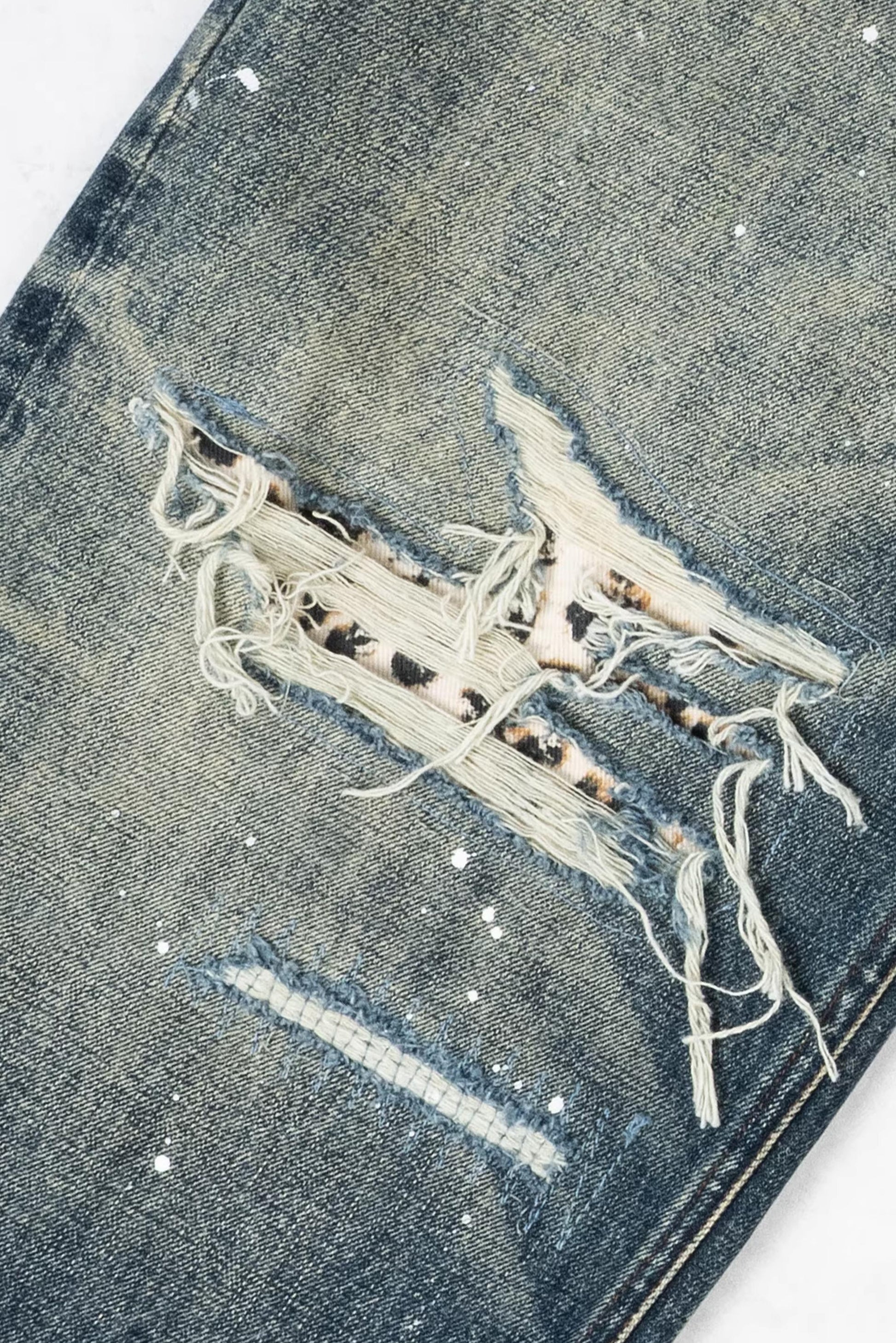 ストーンウォッシュ加工により、深みのあるムラ感のフェードベースを作り出し、太ももや膝部分にピンポイントでダメージを加えることで、自然な着古し感を表現。ランダムなペイントの飛び散りがコントロールされていないラフなビジュアルを演出しつつ、二度目のウォッシュで馴染ませることで、快適さと柔軟性をキープしています。