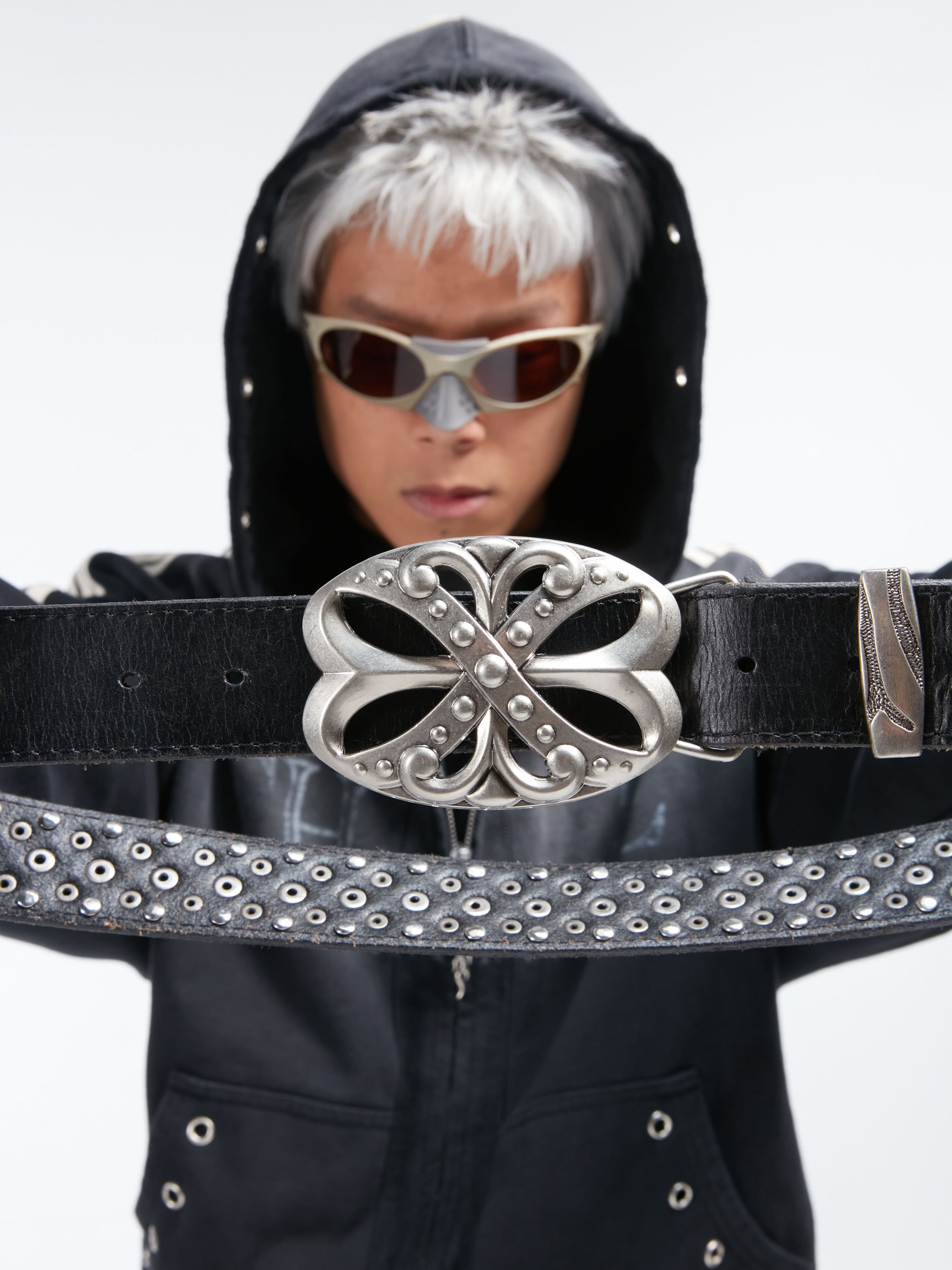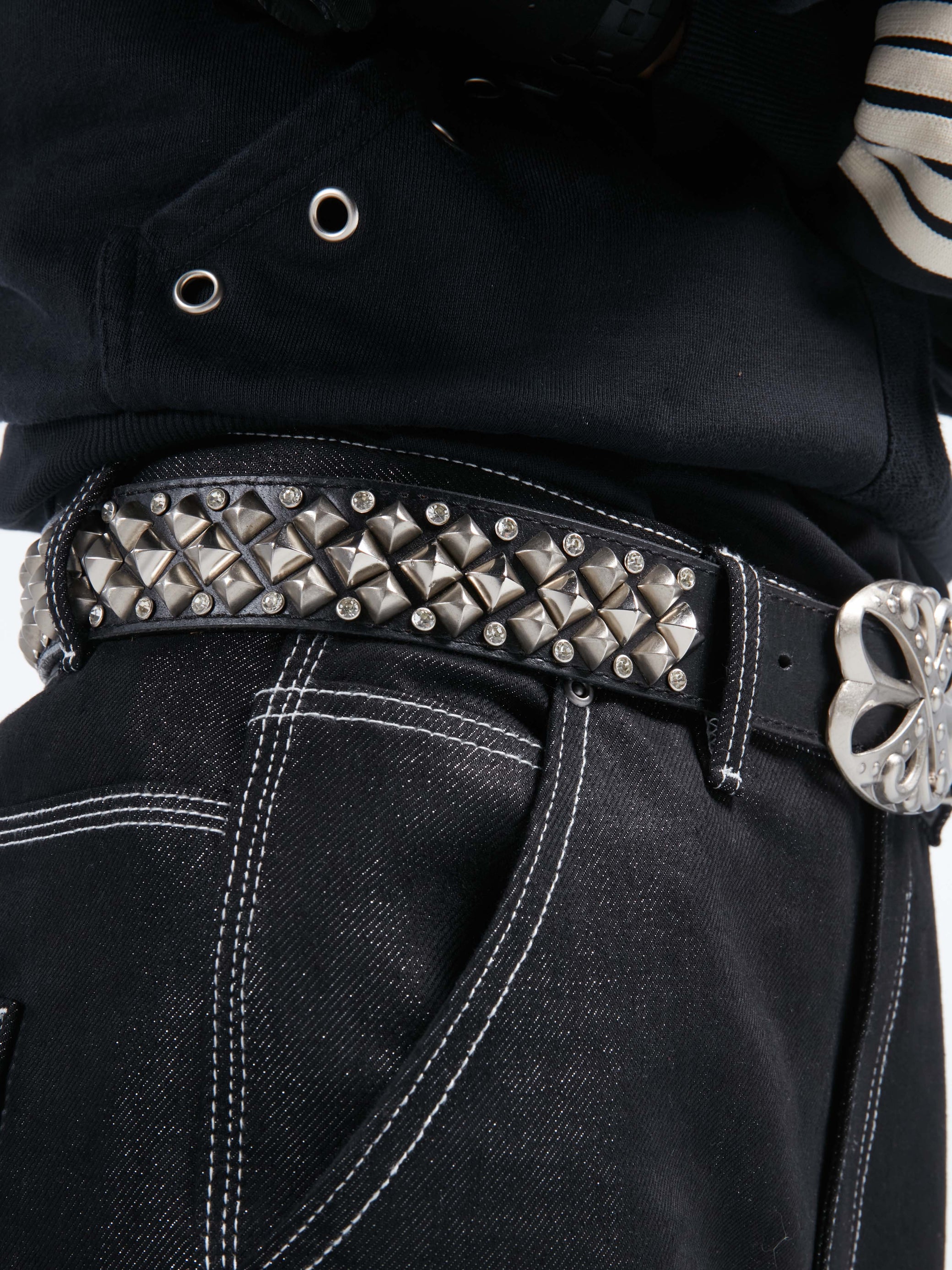 全身リベットはトレンドですが、スタッズ装飾と精巧なメタルディテールの追加で、さらに個性をプラス。バックルデザインで着脱も簡単、ストリート感を高めるルックス。