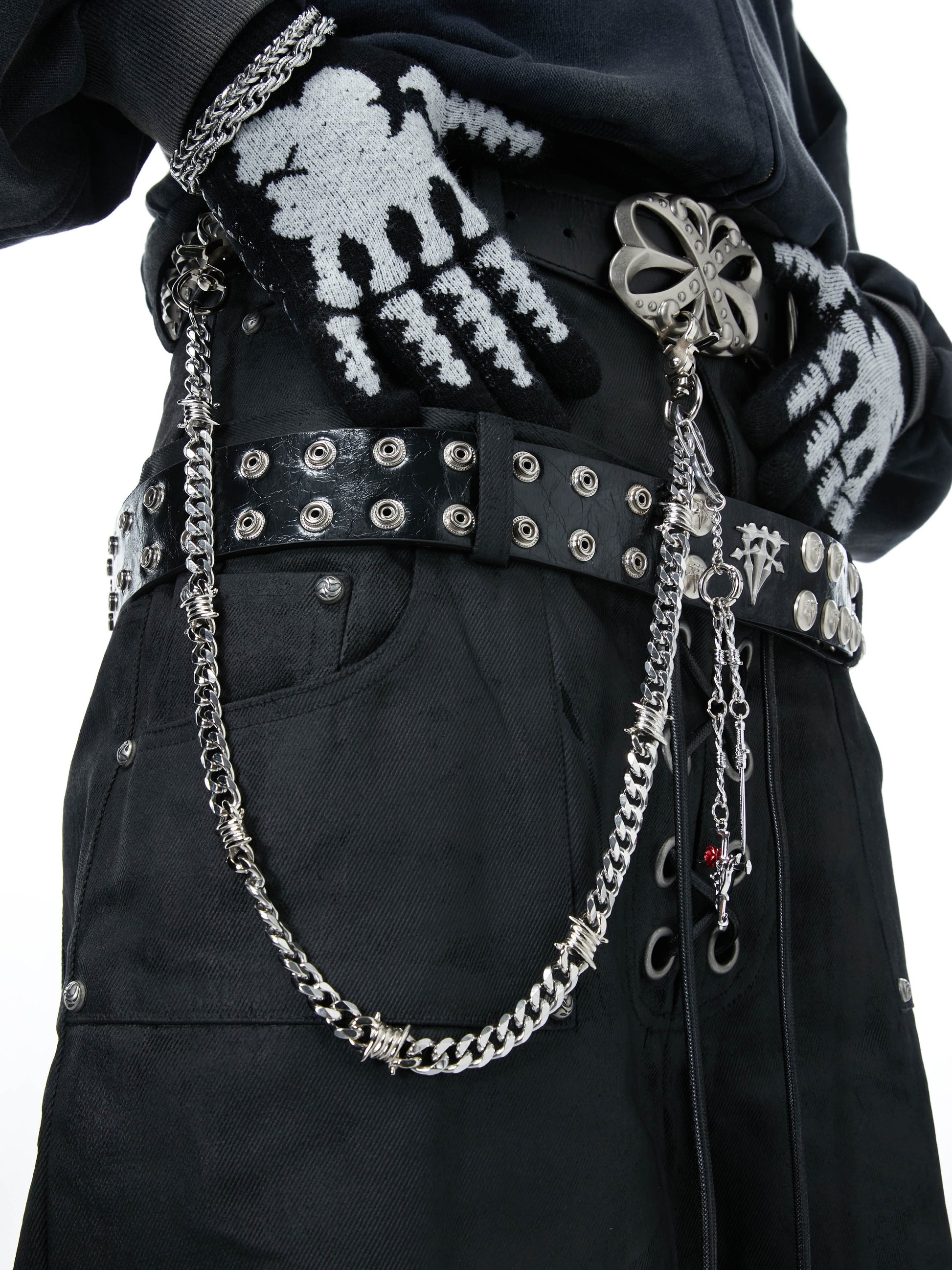 프리미엄 티타늄 스틸로 수작업 제작되었으며 HOWSS에서 독점 디자인한 것으로, 녹 방지, 산화 방지, 마모 방지 기능이 있으며 유지보수가 필요 없습니다. 디자인은 고전적인 종교적 상징과 현대적 디자인 스타일을 결합하여 금속 디테일과 십자가 펜던트를 특징으로 합니다. 여러 구간 체인은 가시 자물쇠 링크로 간헐적으로 배치되었으며, 은색 검과 은색 가시 십자가가 빛과 반항적인 에너지를 강조합니다.