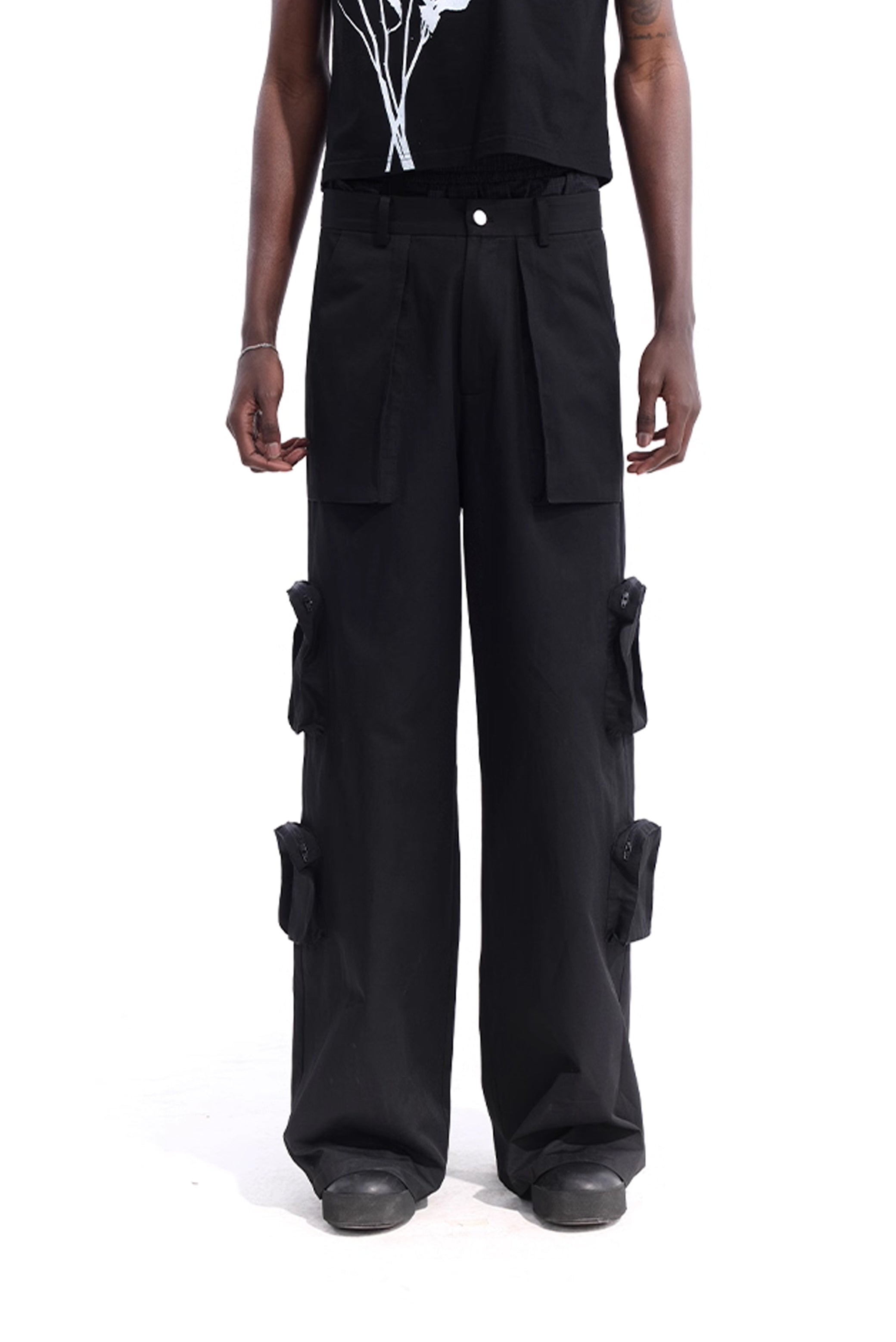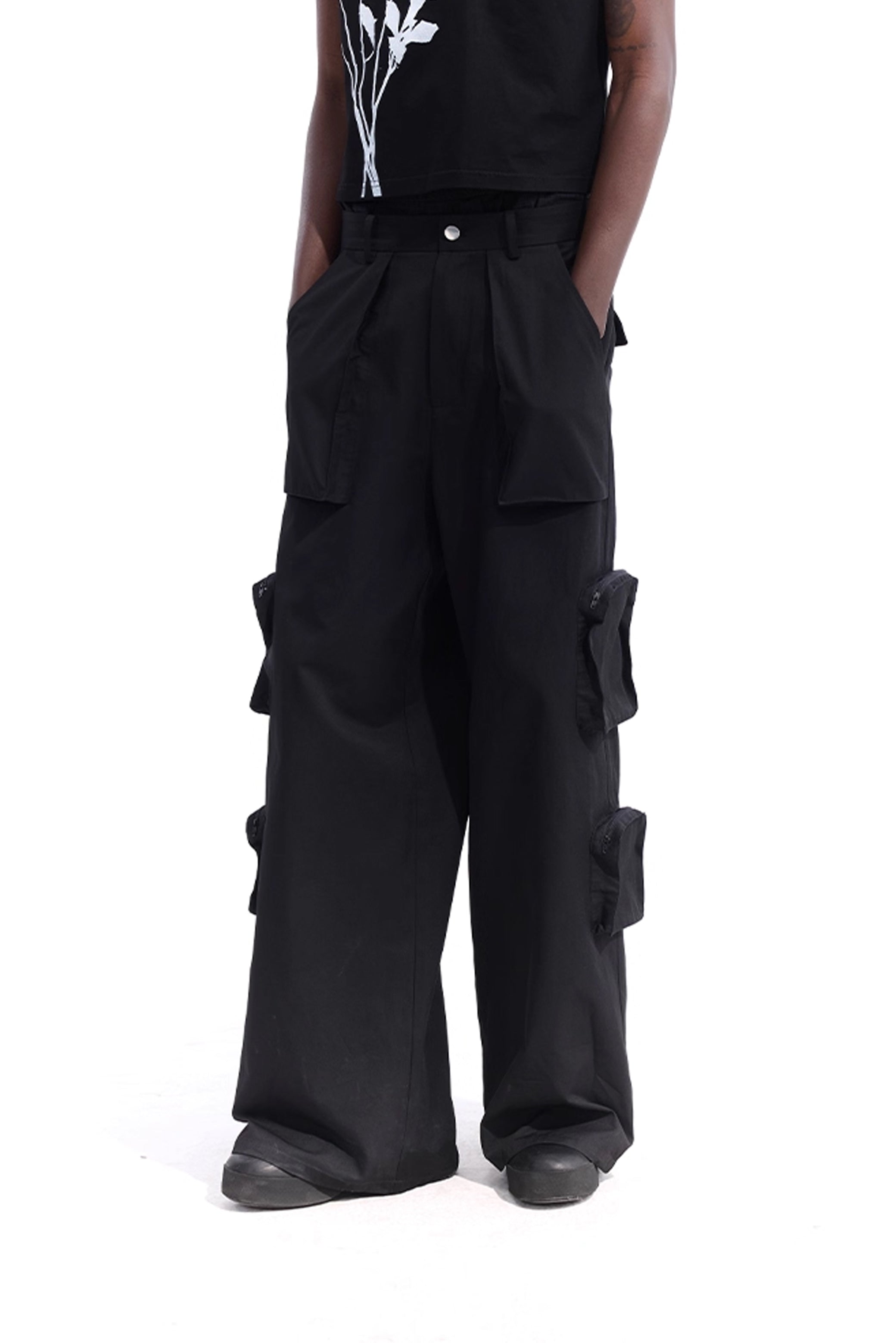 The multi-pocket design combined with a buggy silhouette makes the pants visually noticeable, while the loose fit keeps them comfortable.