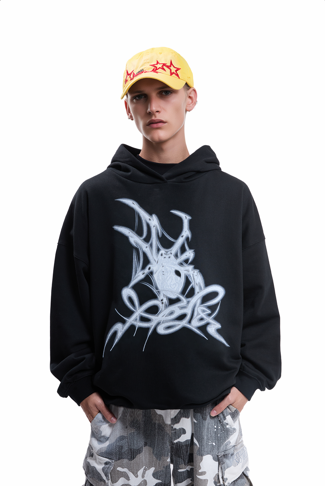 HOWSS.STUDIO 후디는 도쿄 × 상하이 × 로스앤젤레스의 스트리트웨어 개척자들이 제작하였습니다. 480g의 고중량 프리미엄 원단으로 제작되었으며, 와이드 숄더 컷과 테이퍼드 핏, 거리에서 준비된 에너지를 담고 있습니다: 미니멀하고 치명적이며 무시할 수 없습니다.
