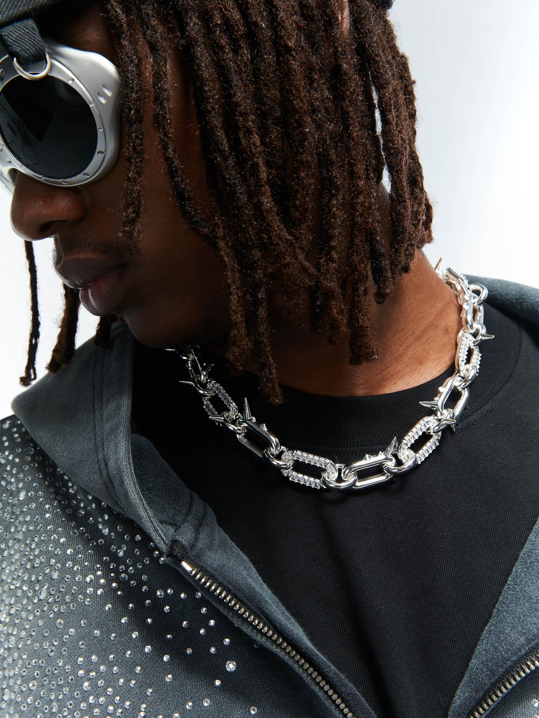 Built from silver-plated copper, each link is precision-cast for sharpness and shine. Embedded zircon stones hit with clear contrast, while the spike elements add a kinetic edge. Polished smooth, light on weight, and built for daily fire.