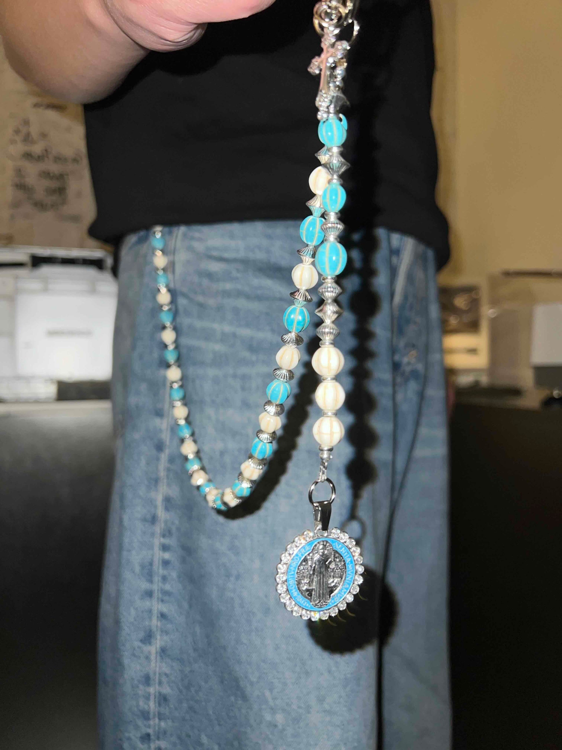 • Finished with a silver round pendant