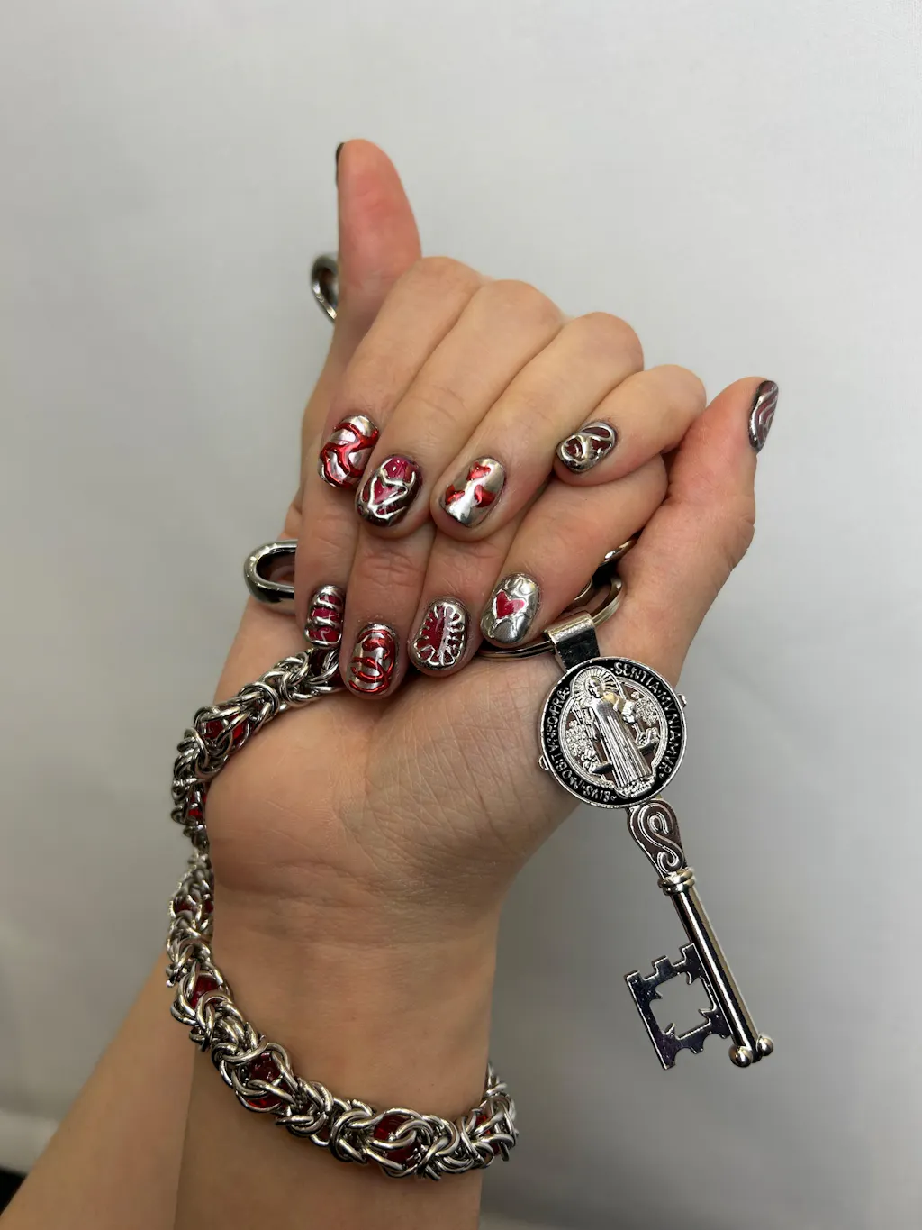 Handcrafted from premium titanium steel and designed exclusively by HOWSS, the Bloodline pant chain is a bold statement piece built to resist rust, oxidation, and wear—no maintenance needed. Multiple small red artisanal stones are embedded along the chain, catching the light to create a striking crimson gleam.