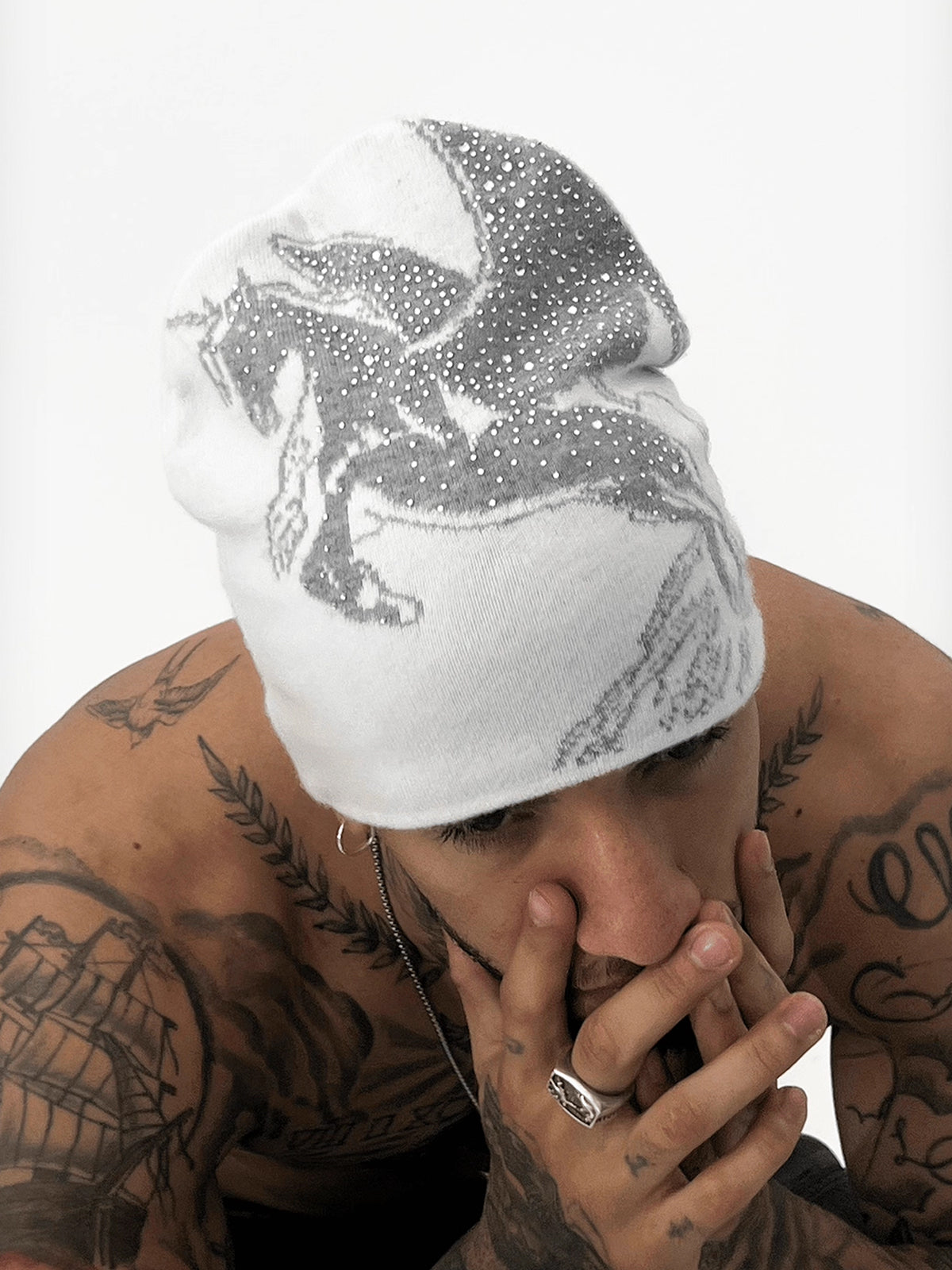 • High-definition animal jacquard pattern with full crystal detailing for bold texture and depth.
