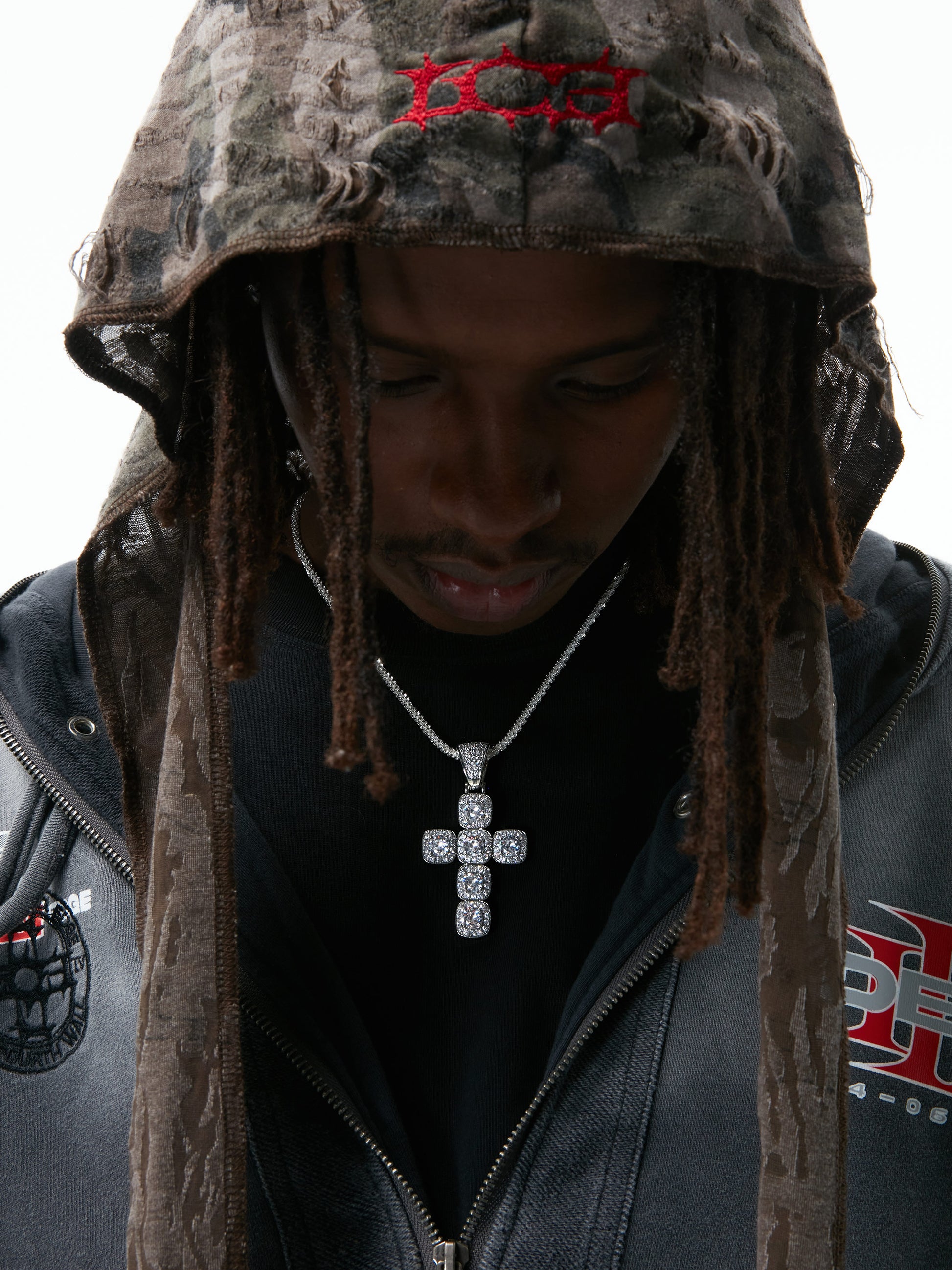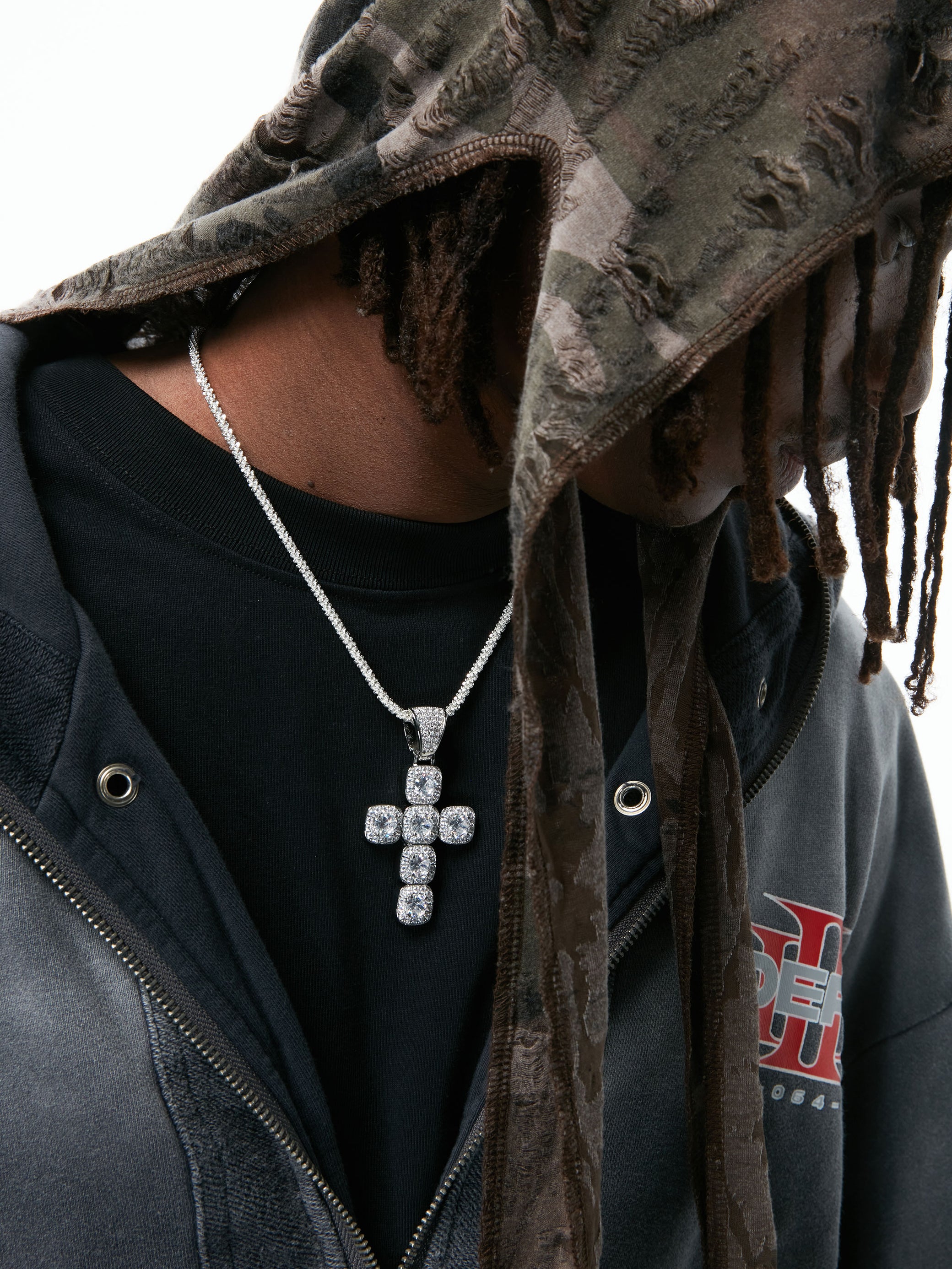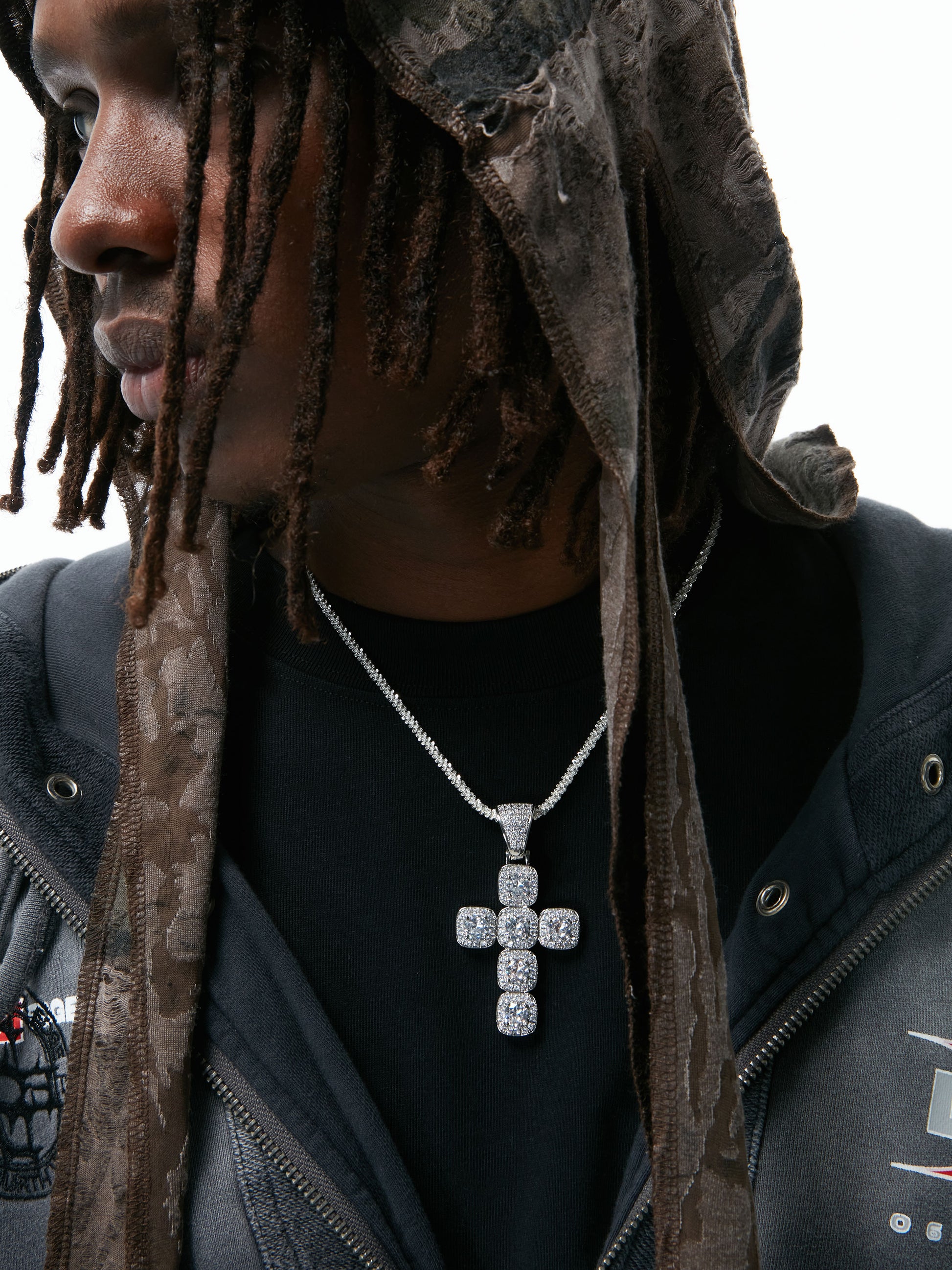 This bold pendant features a striking cross design and is set with sparkling zircons. The zircons exude a luxurious diamond-like luster, giving the piece a brilliant, high-end look, while the strong and durable metal ensures it will stand the test of time. It is resistant to rust, oxidation and daily wear, making it durable and maintenance-free.