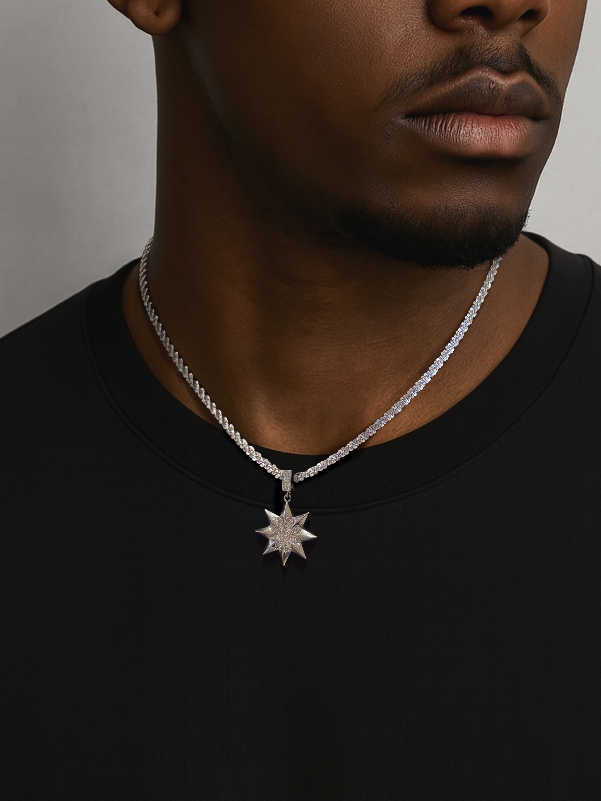 Exclusively designed by HOWSS, ELECTRA draws from micro-scale forces and cosmic design. Its starburst form echoes atomic symmetry, charged with sharp angles and radiant balance — like a frozen spark, or a symbol carved from voltage. Built to stand out, no noise needed.