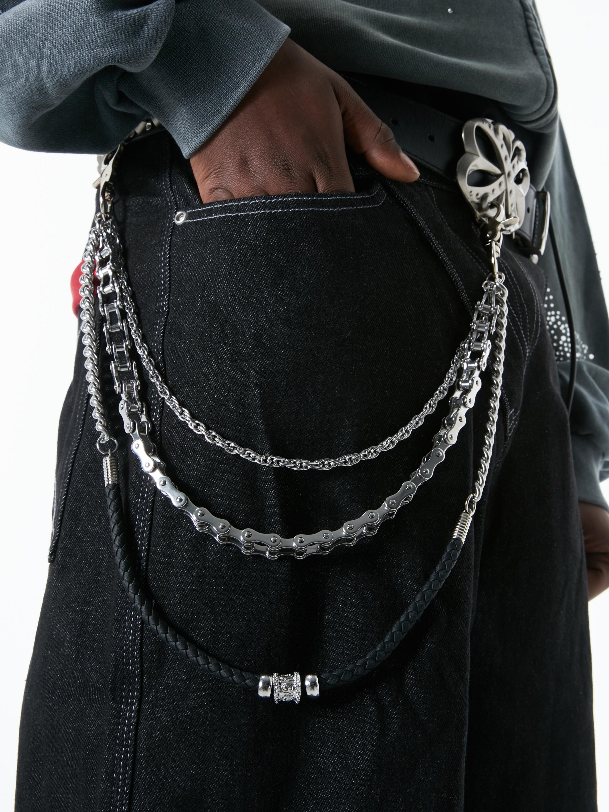 • Triple-layer chain & leather design