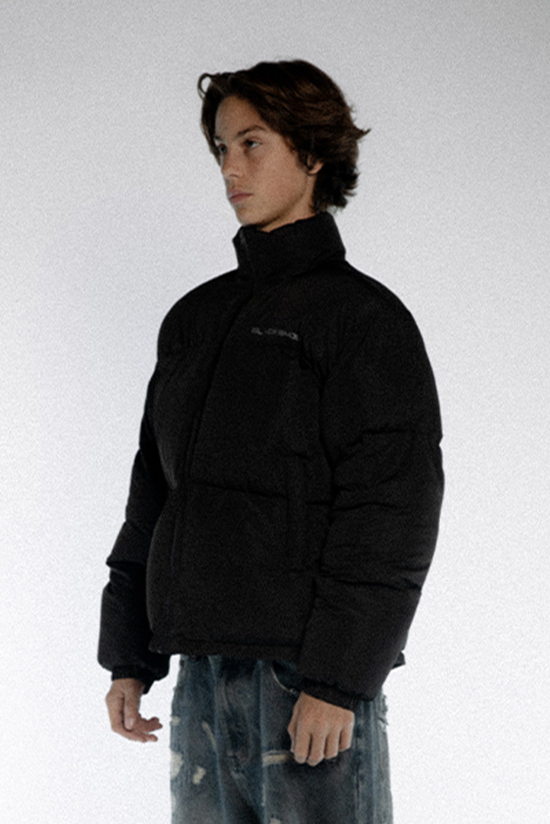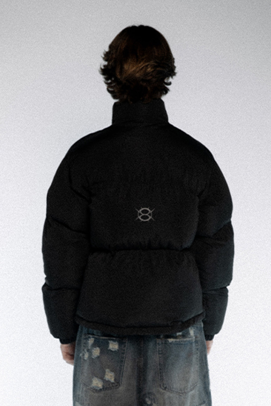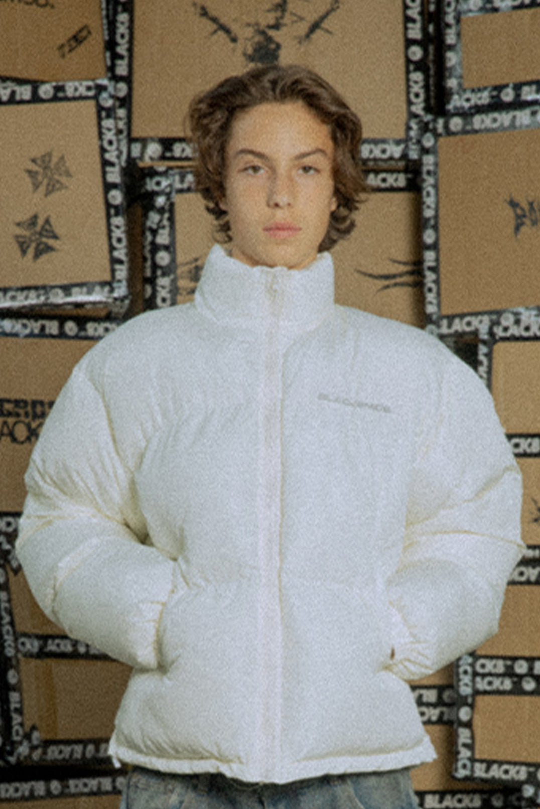 A clean, padded silhouette built for winter streets. The jacket features a structured stand collar, subtle branding, and a sharp cropped-boxy shape that amplifies proportions. Minimal on the surface, powerful in attitude — warm, solid, and unmistakably bold.