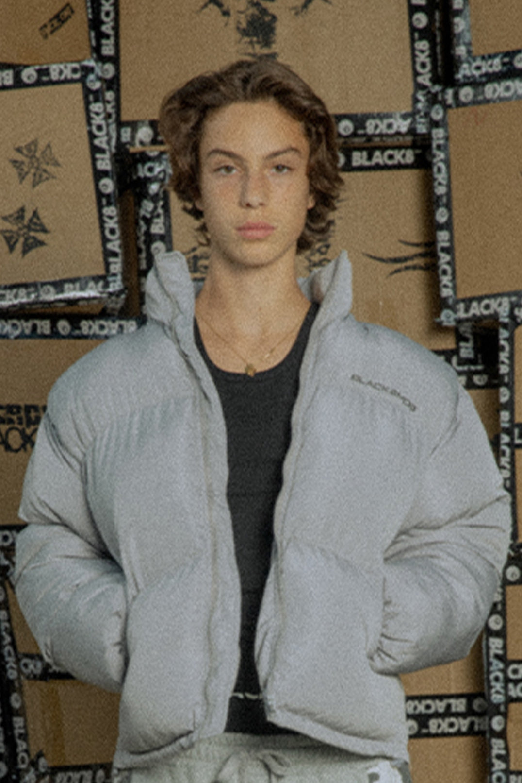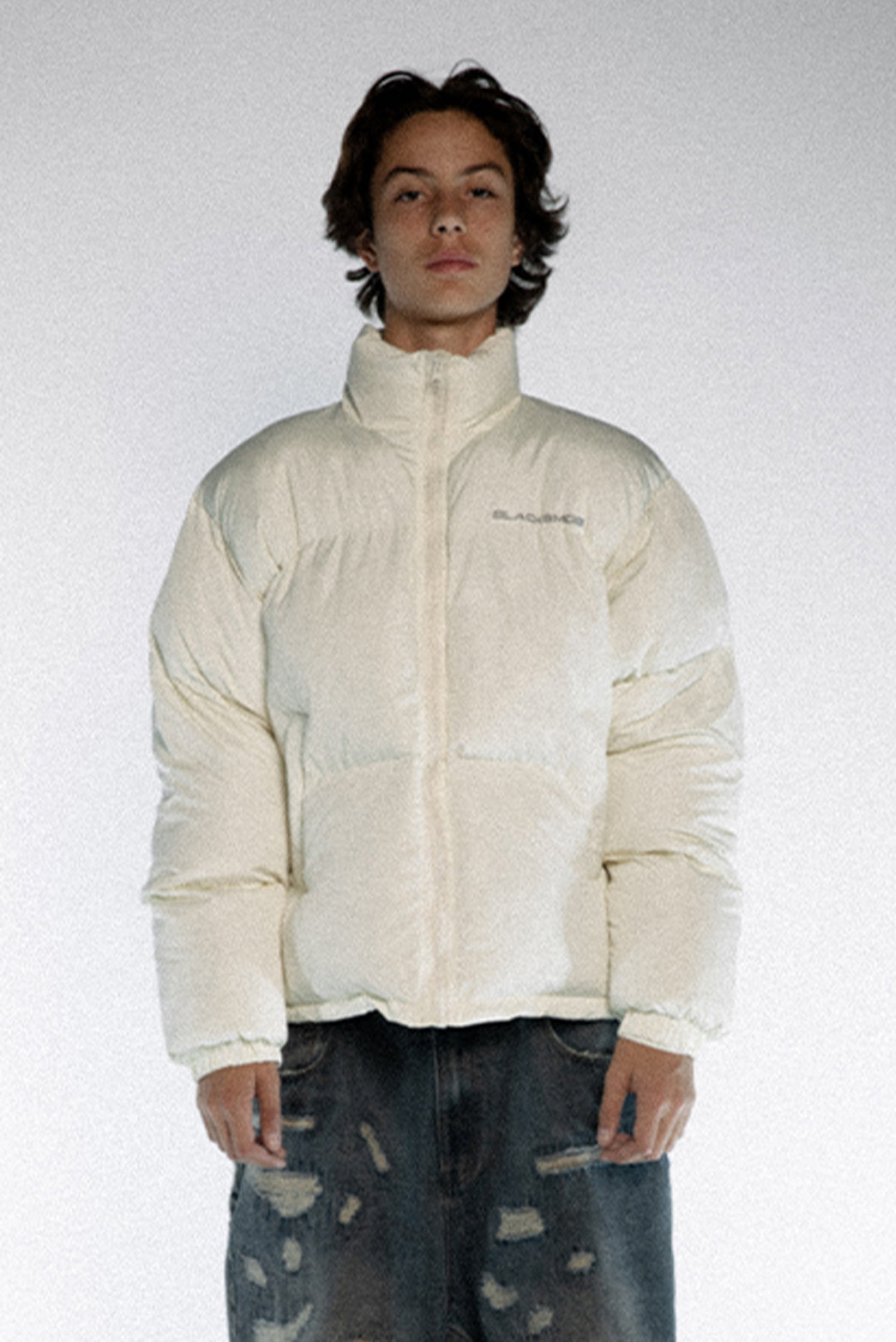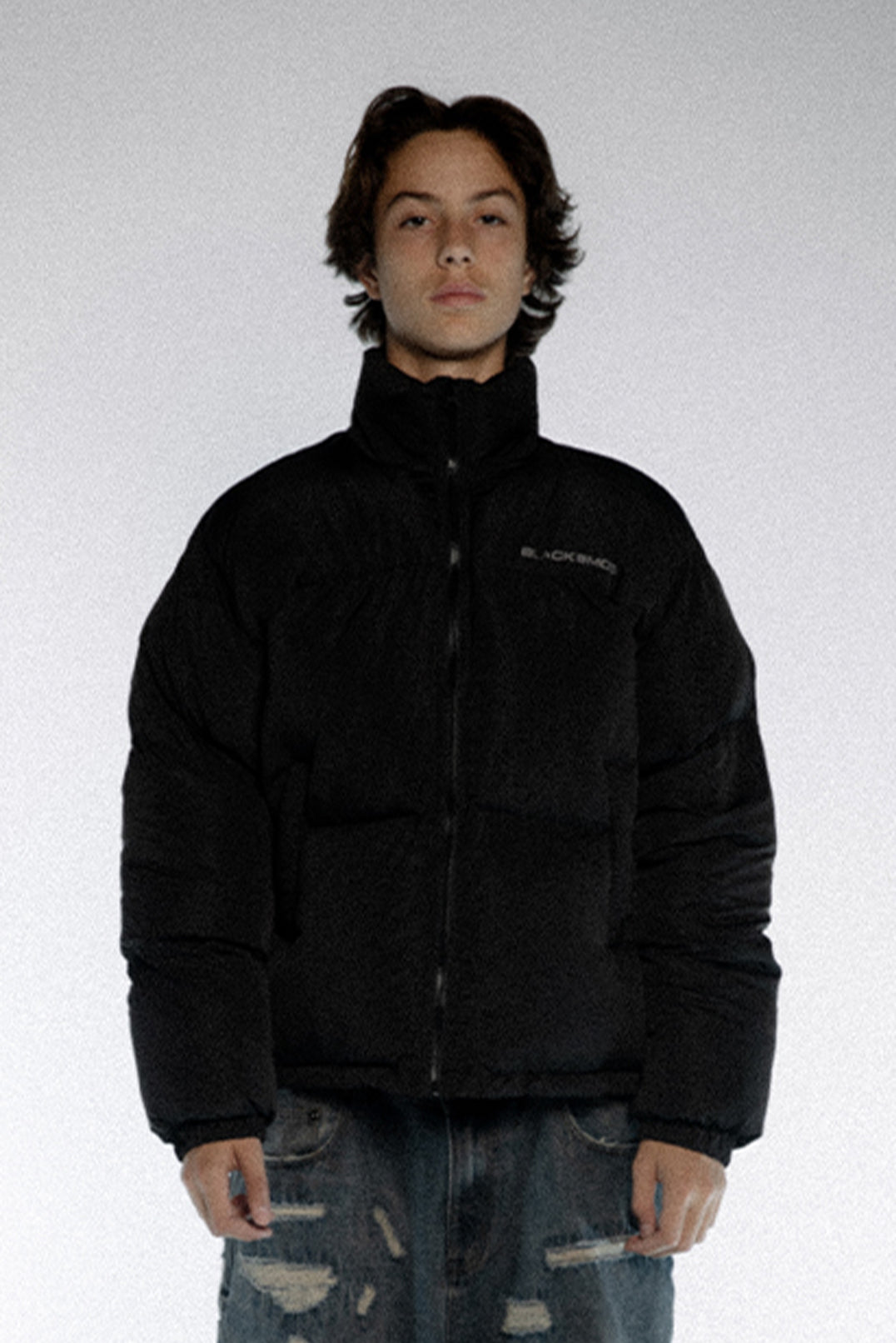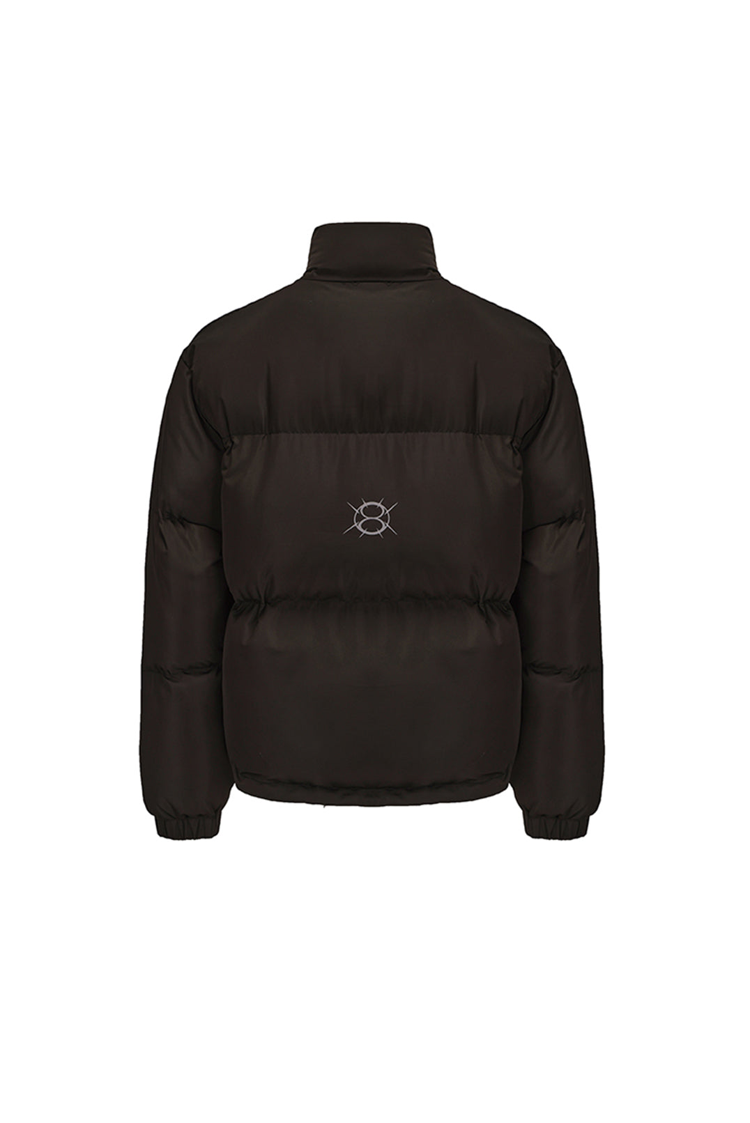 A clean, padded silhouette built for winter streets. The jacket features a structured stand collar, subtle branding, and a sharp cropped-boxy shape that amplifies proportions. Minimal on the surface, powerful in attitude — warm, solid, and unmistakably bold.