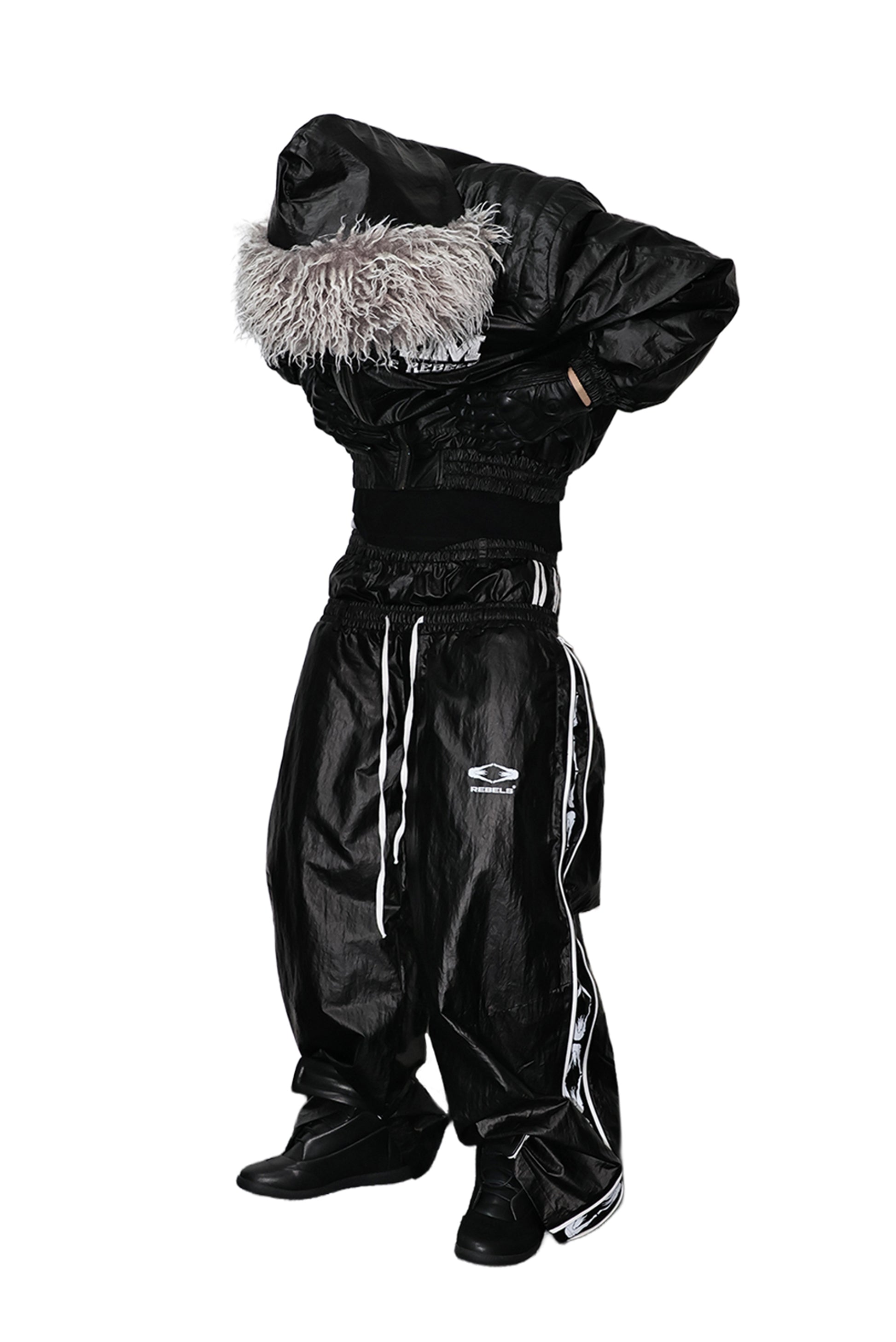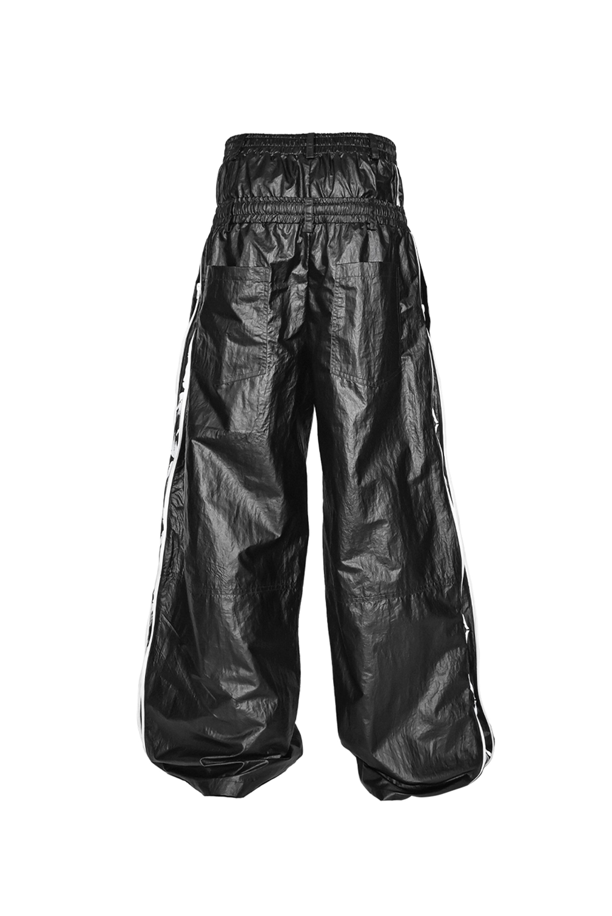 Made from premium PU-coated fabric with a unique texture, balancing structure and comfort. The 3D double-waist design enhances layering and silhouette. Hidden side zippers with logo straps allow adjustable fit and dual styling options for versatile wear.