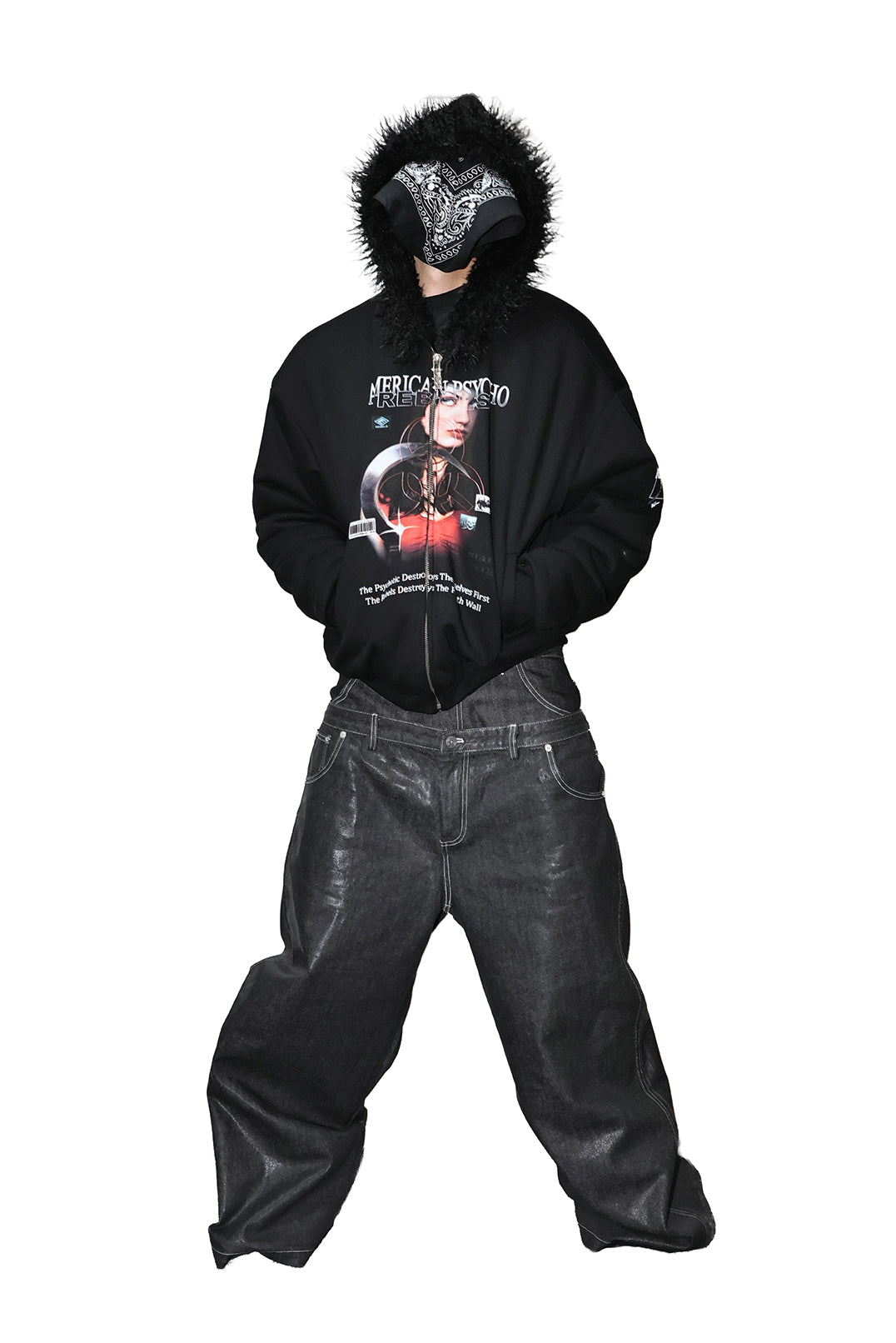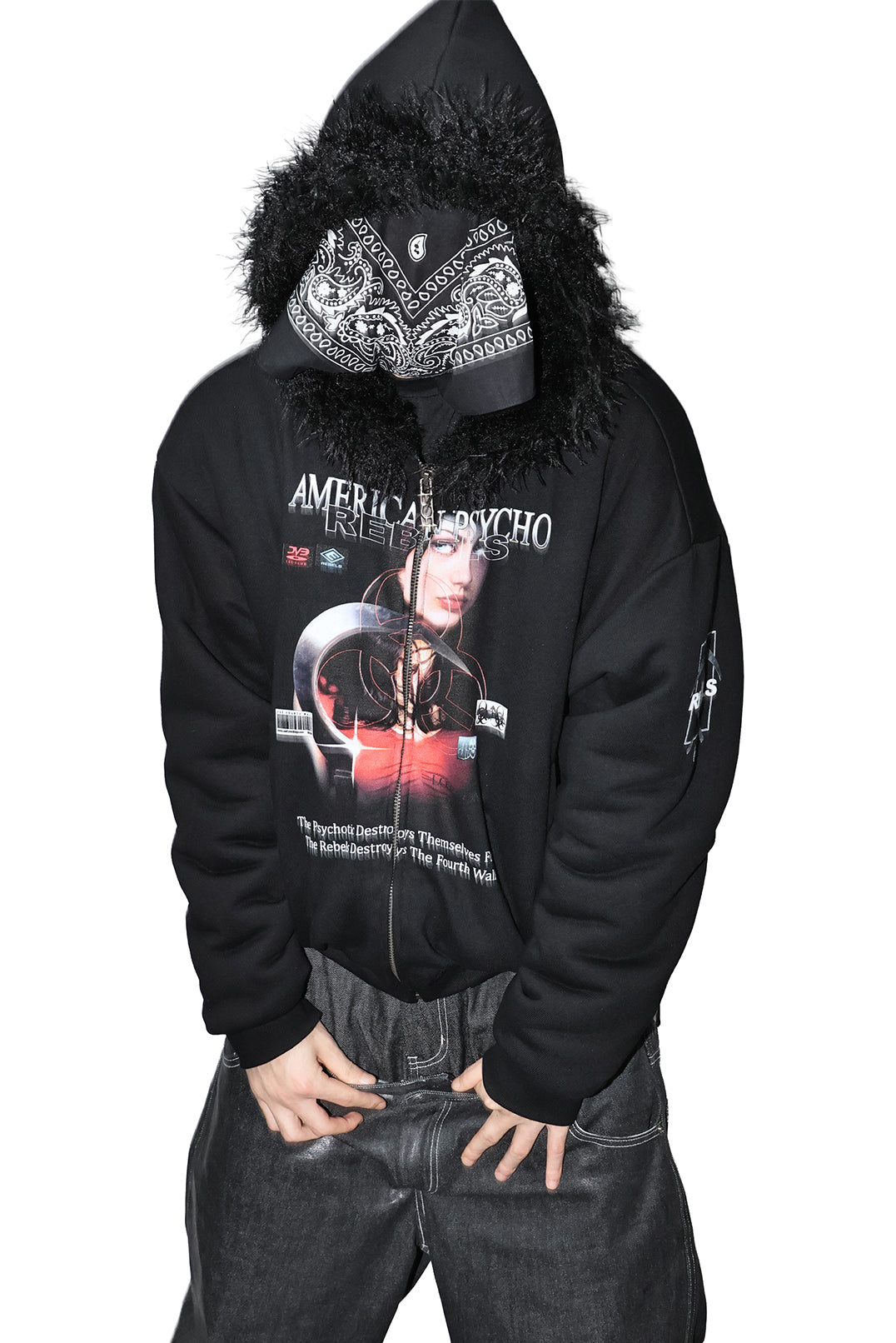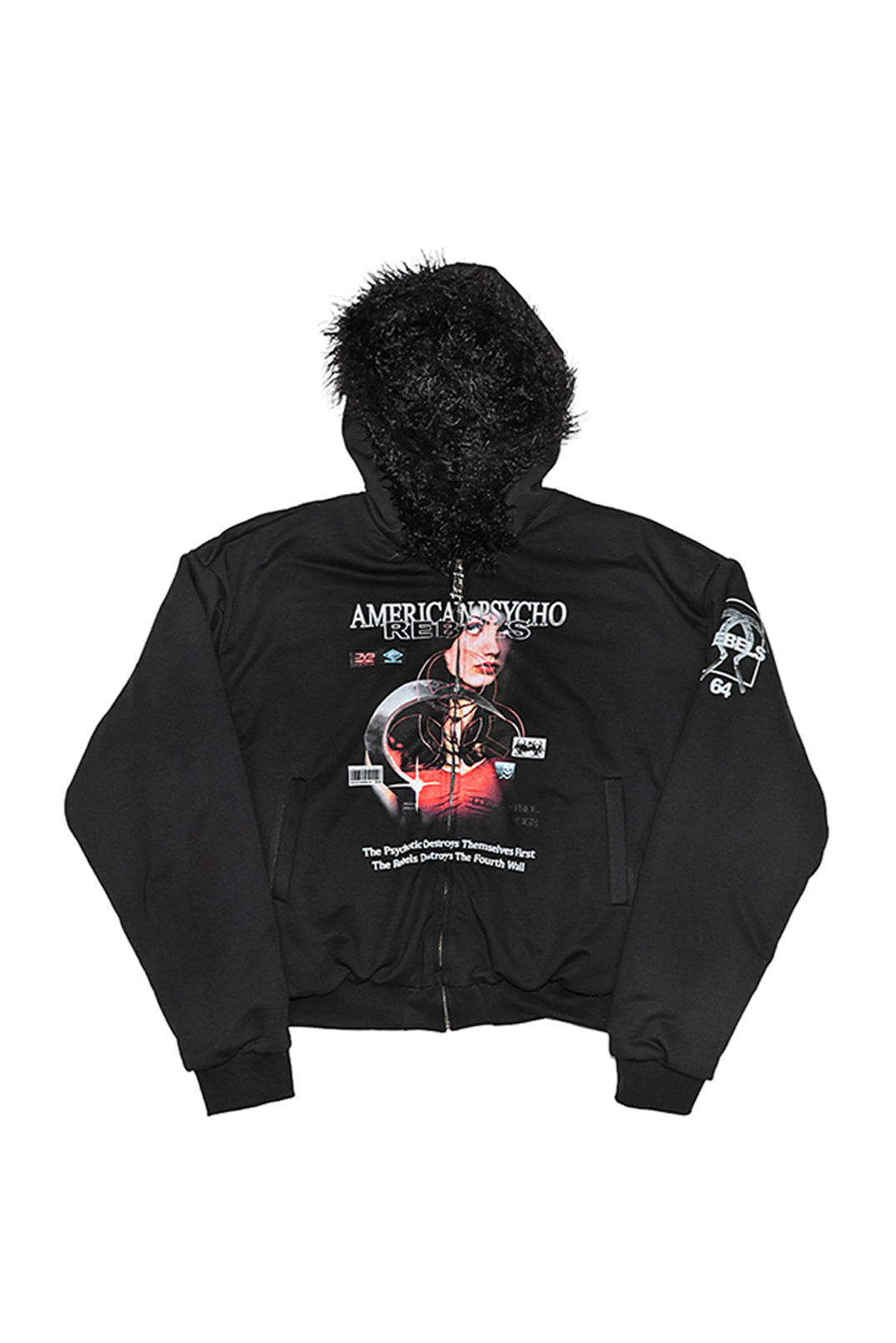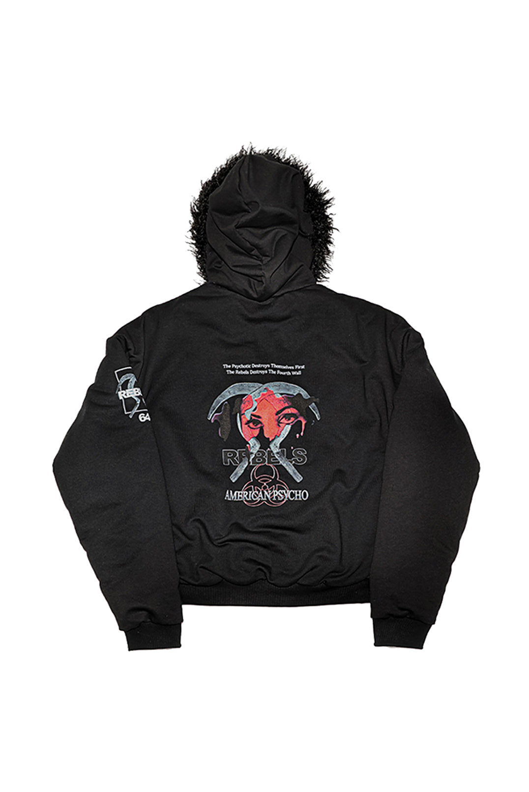 The back and shoulder panels feature high-definition digital prints inspired by American Psycho 2, portraying the tension between elegance and danger — a visual echo of the HOWSS rebellion spirit.