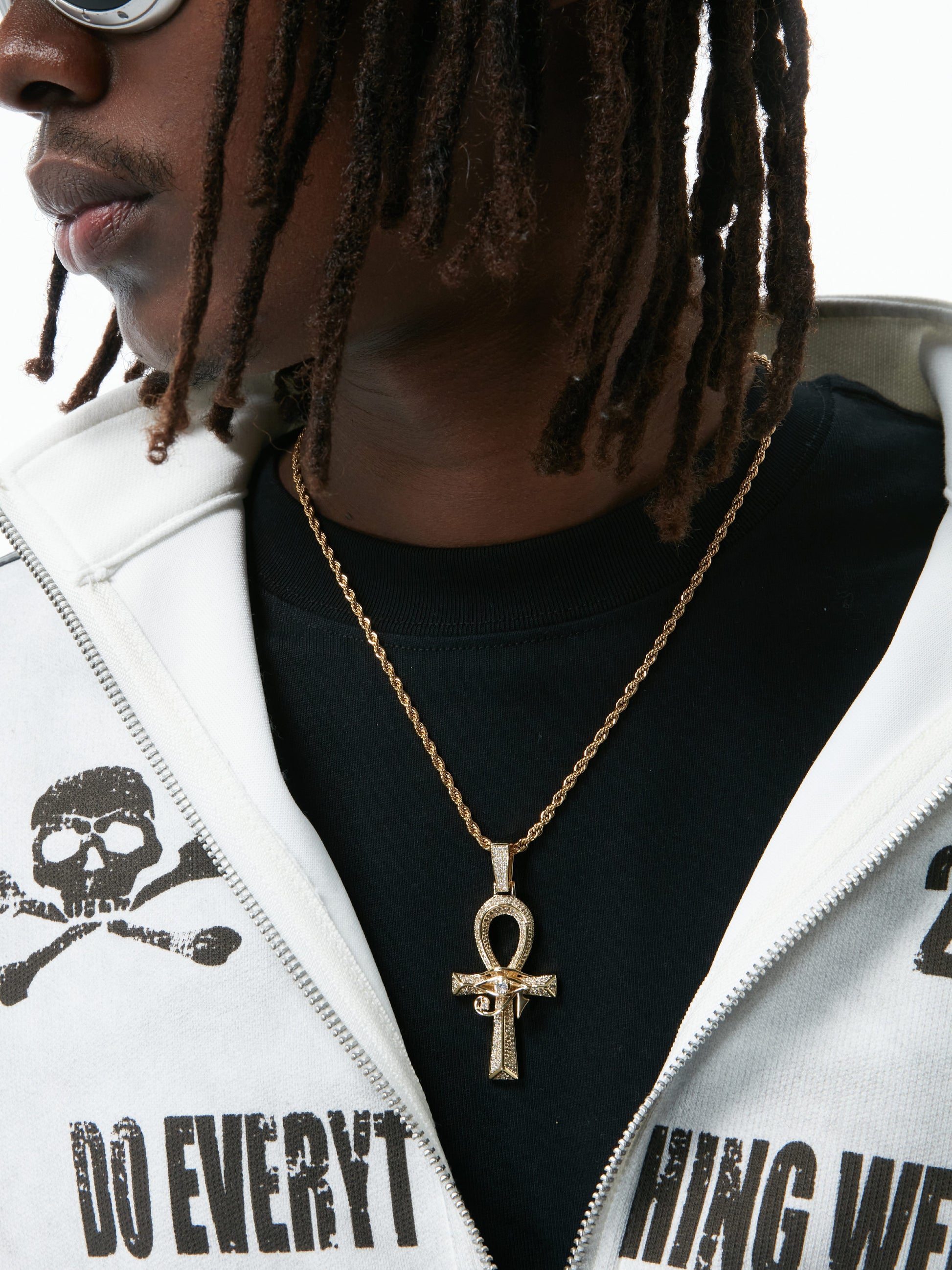 This bold pendant features a striking cross design and is set with sparkling zircons. The zircons exude a luxurious diamond-like luster, giving the piece a brilliant, high-end look, while the strong and durable metal ensures it will stand the test of time. It is resistant to rust, oxidation and daily wear, making it durable and maintenance-free.