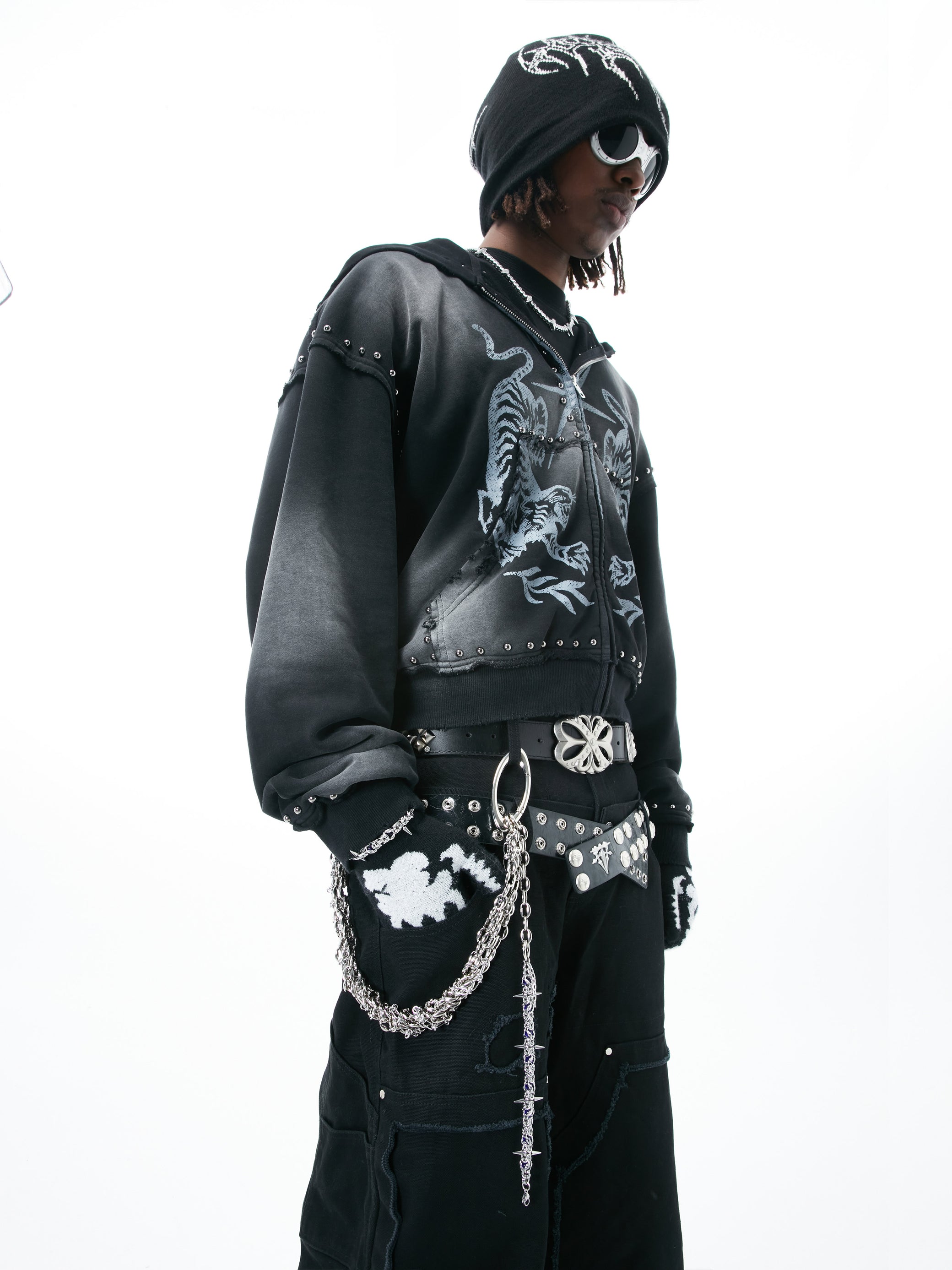 Exclusively designed by HOWSS, this multi‑chain piece distills raw punk style into wearable form. Layered high‑polish metal alloy chains collide with barbed spikes to create tension, structure and street style. Look closely and you might even see a mischievous silhouette — almost like an edgy, twisted Mickey hiding in plain sight. Bold and versatile, it’s made for trendsetters who break the rules.