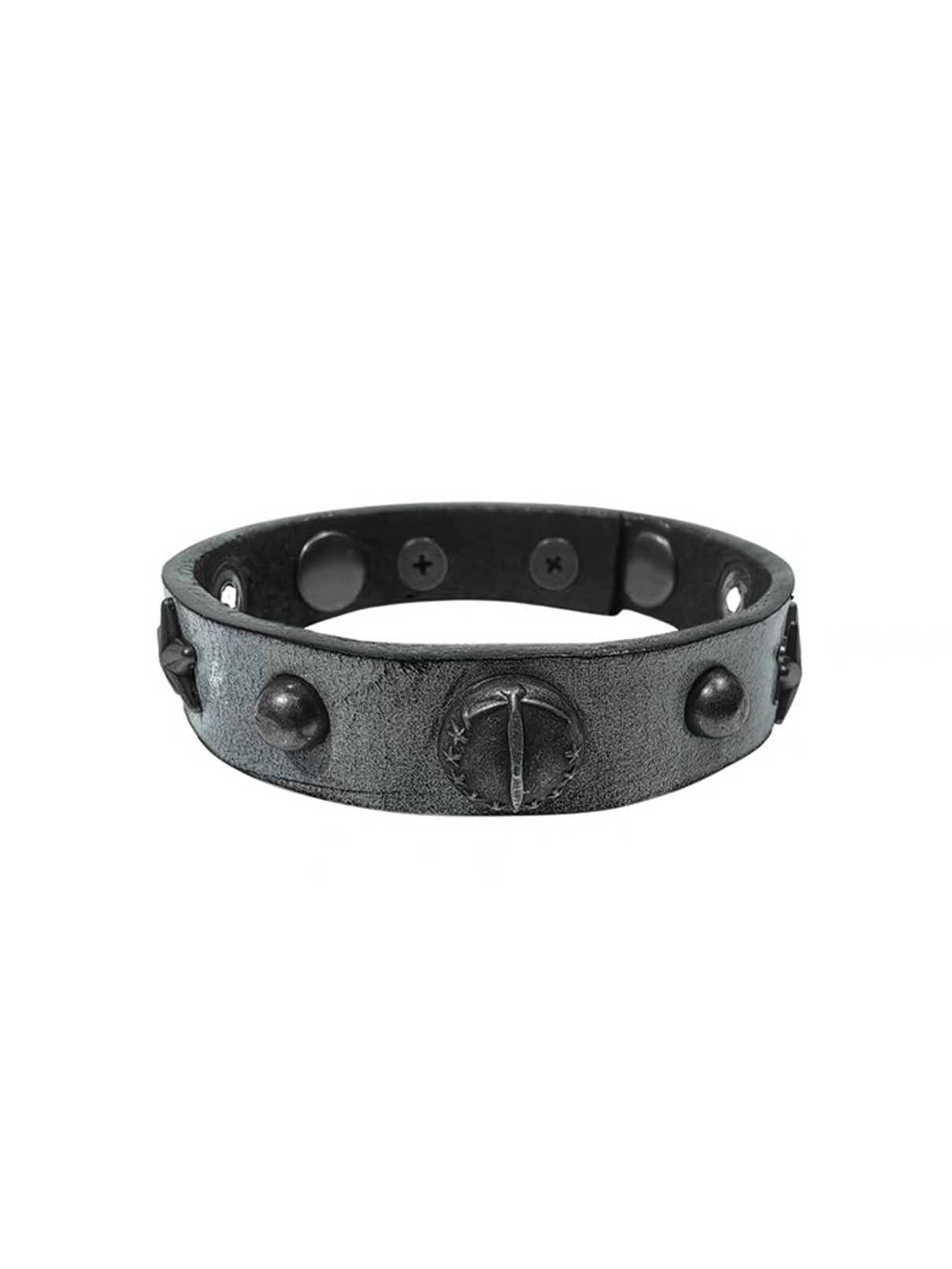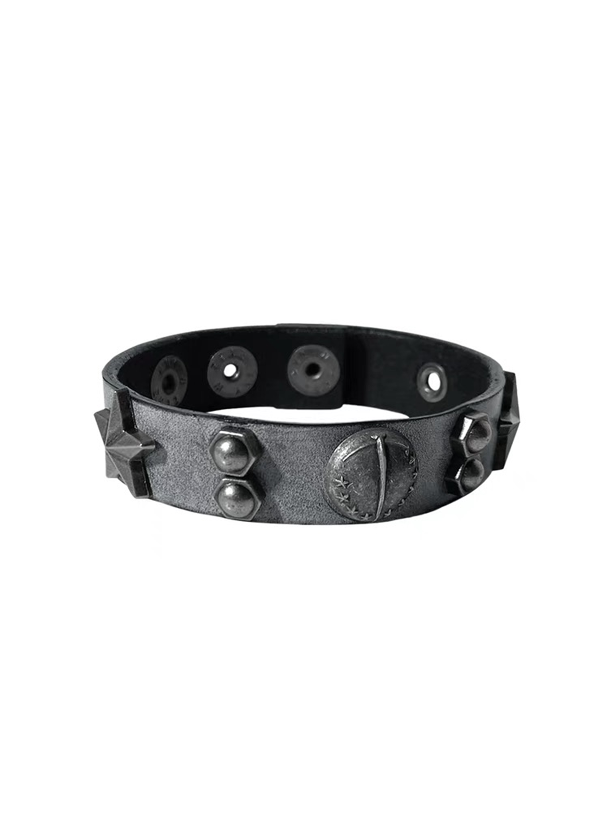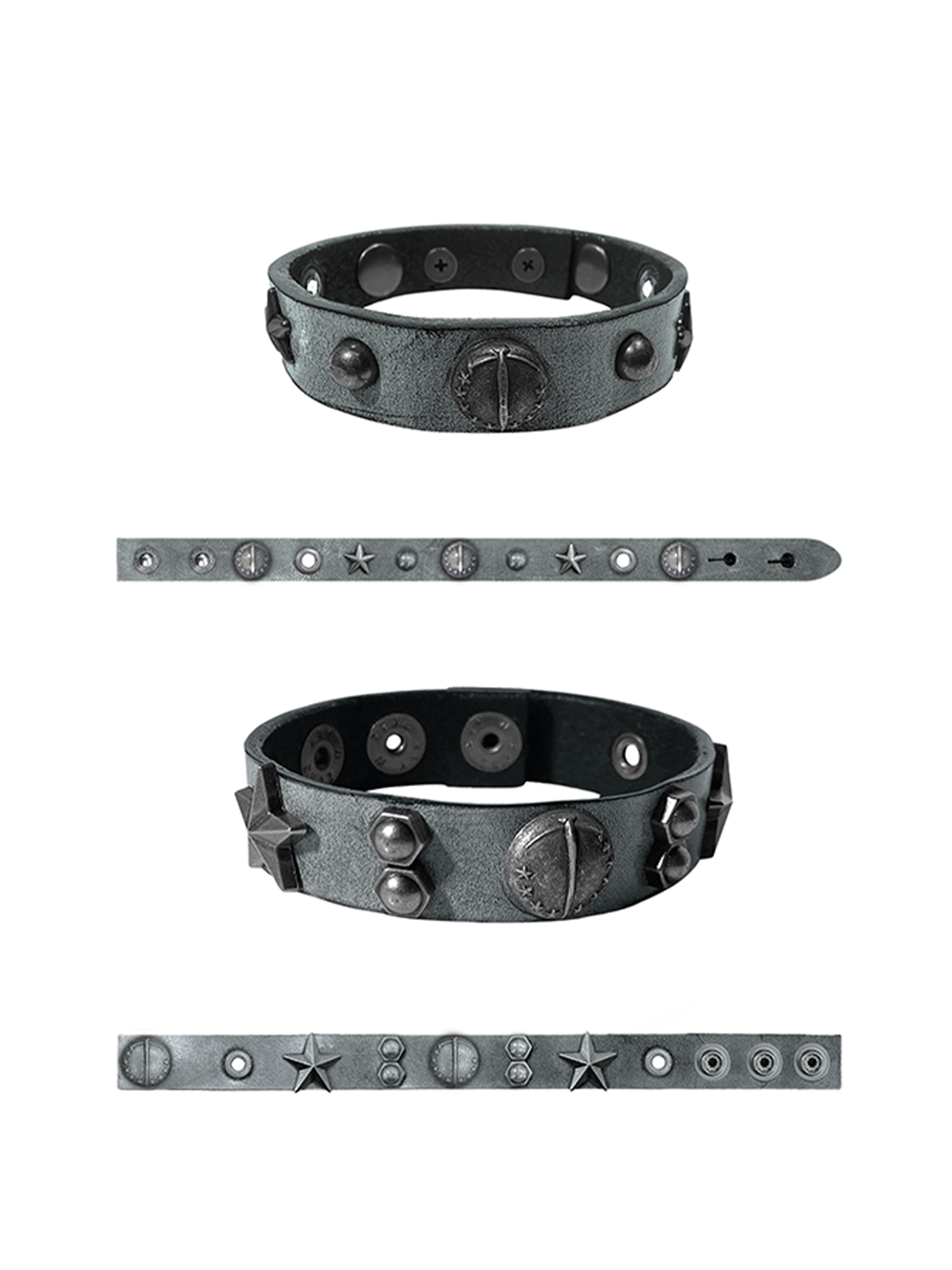 HOWSS.STUDIO handpicked edits — teaming up with TecNineGroup. Crafted from full-grain leather and oxidized copper, this bracelet brings together rugged textures and bold detailing. Studded hardware and distressed metalwork reflect a rebellious spirit, while the snap-button closure offers secure, adjustable wear. A daily piece with unapologetic attitude.