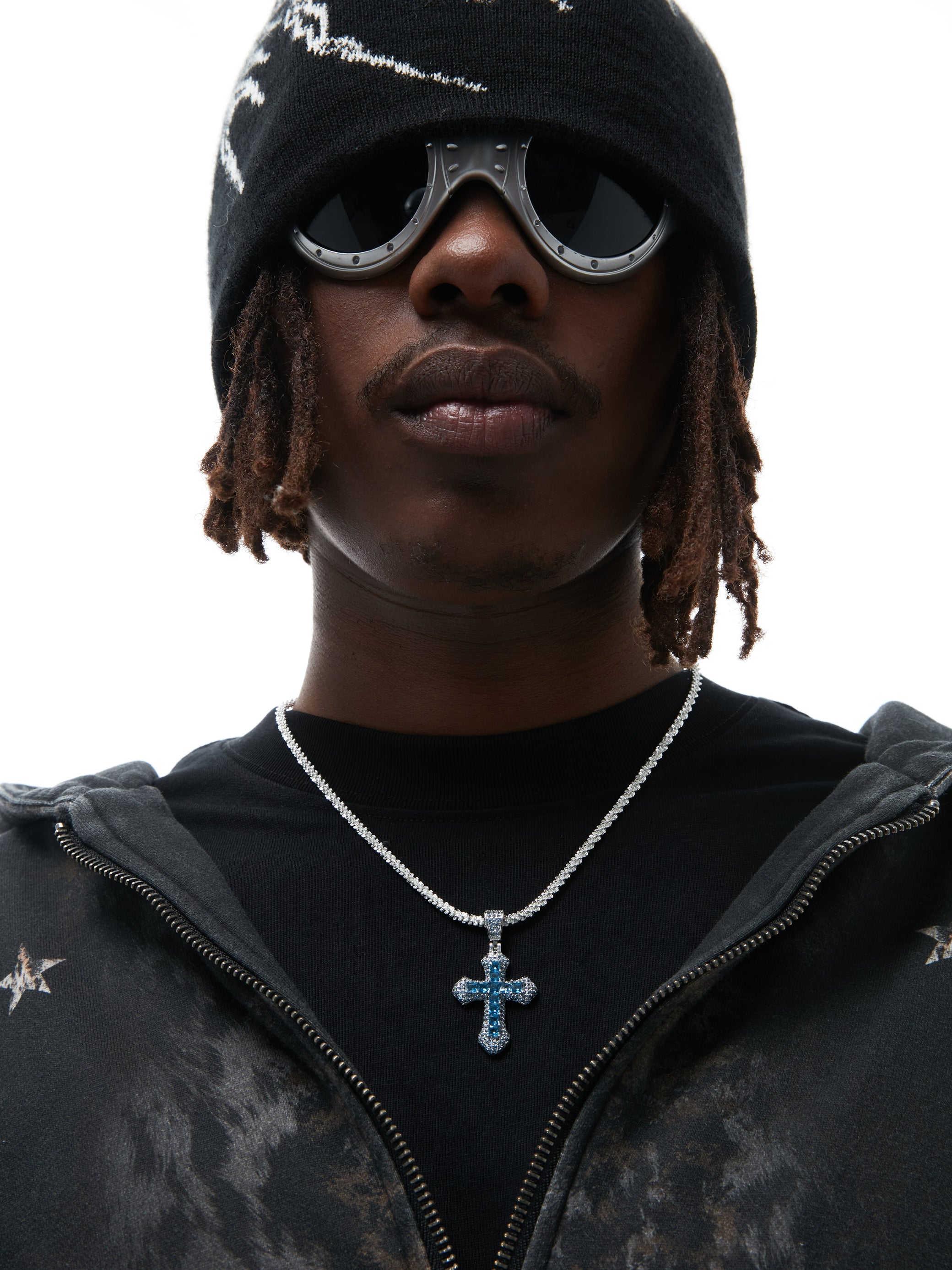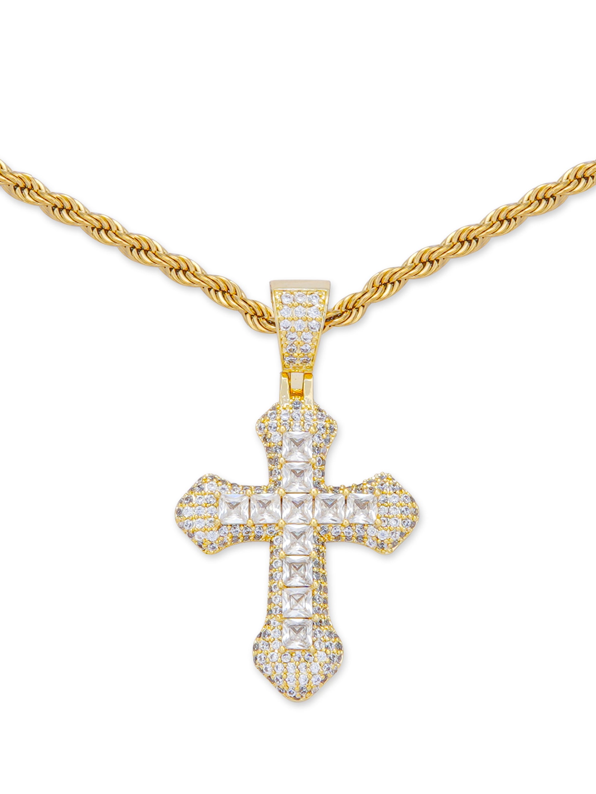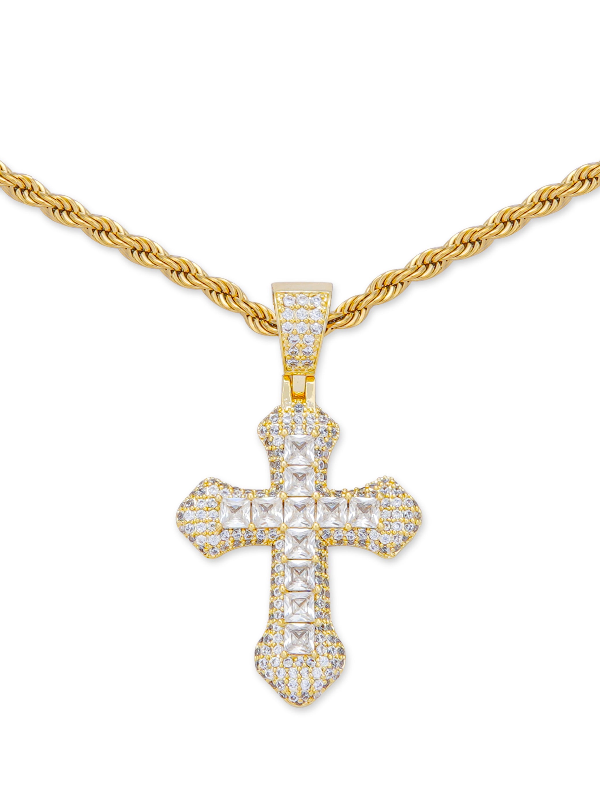 This bold pendant features a striking cross design and is set with sparkling zircons. The zircons exude a luxurious diamond-like luster, giving the piece a brilliant, high-end look, while the strong and durable metal ensures it will stand the test of time. It is resistant to rust, oxidation and daily wear, making it durable and maintenance-free.