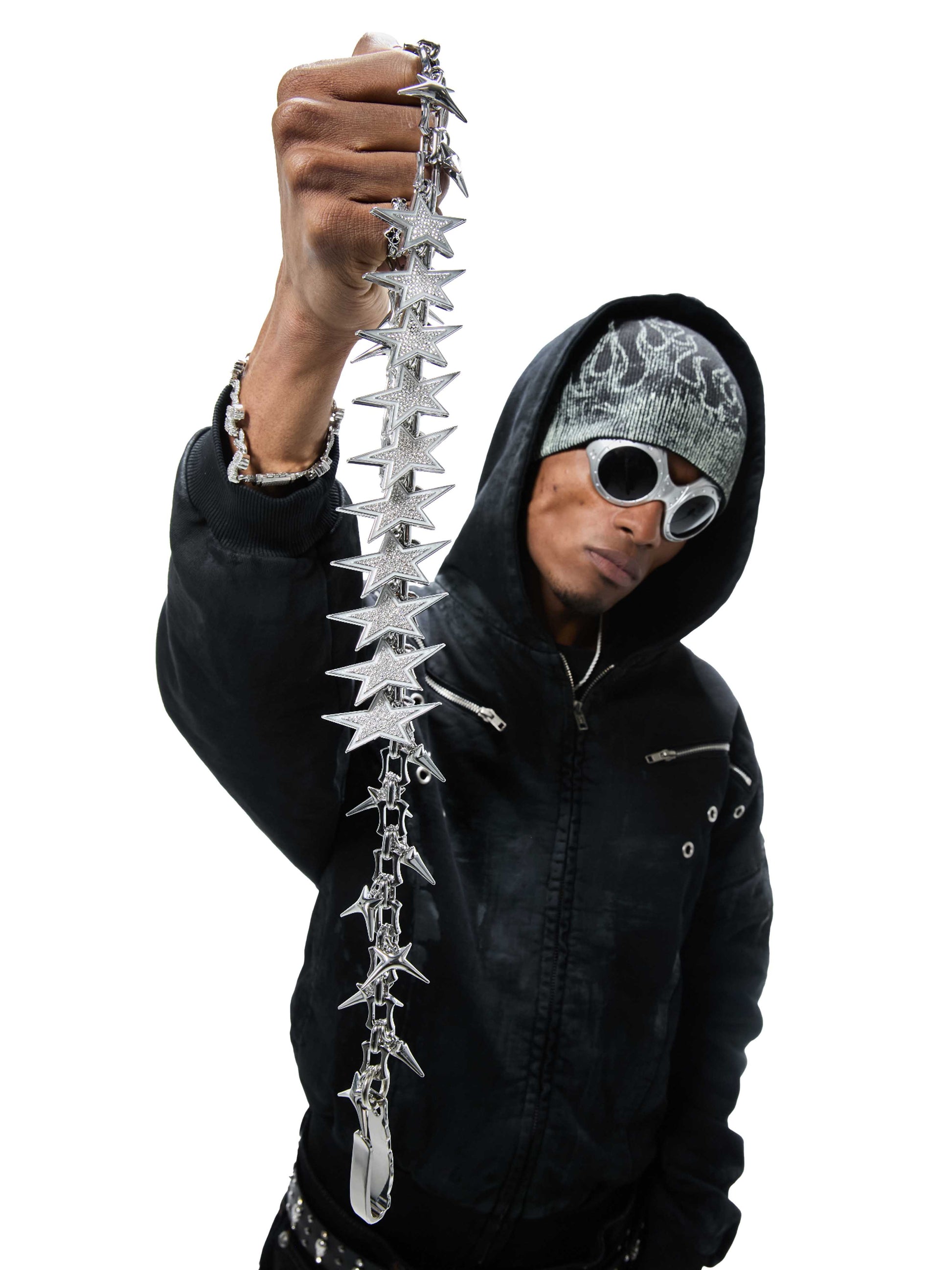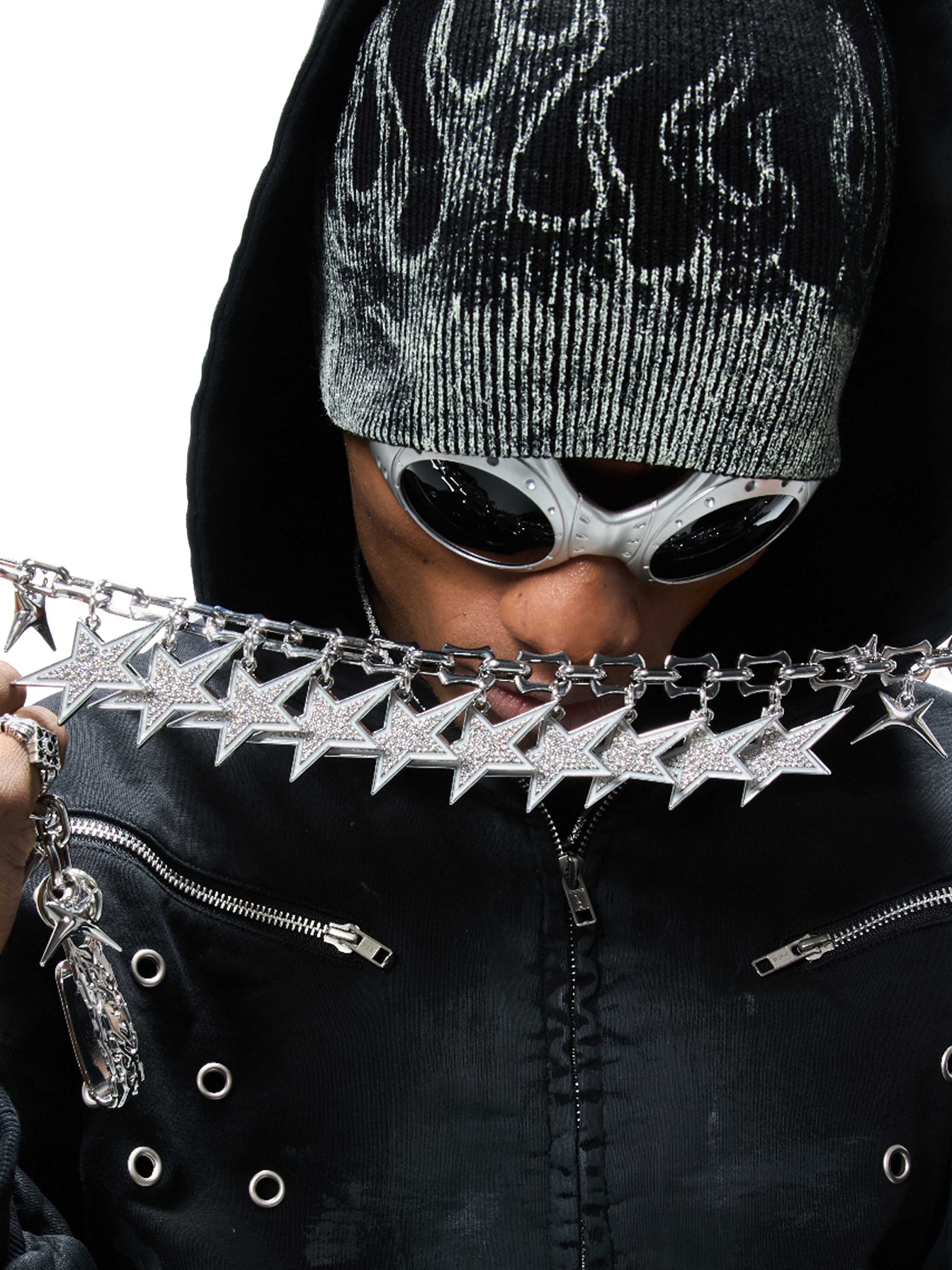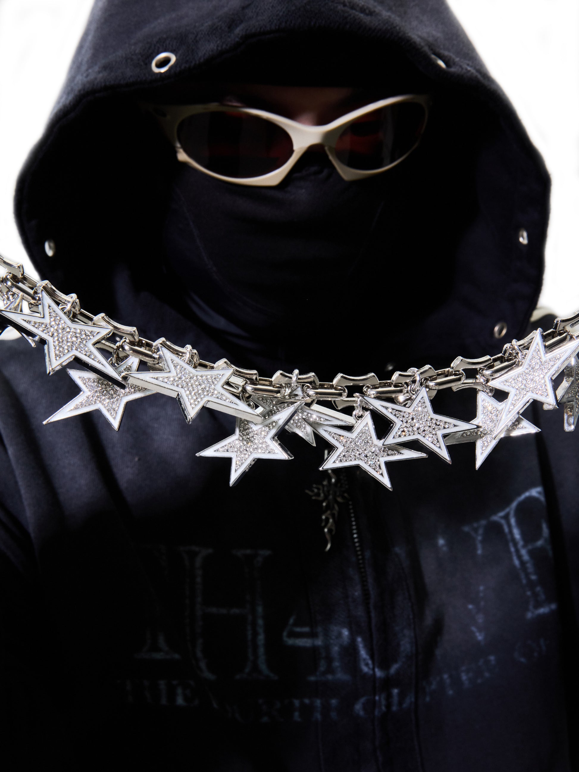 Crafted from high-grade alloy, including both the main chain and star pendants. Each star is hand-set with clear rhinestones, adding sharp sparkle against the solid metal base.