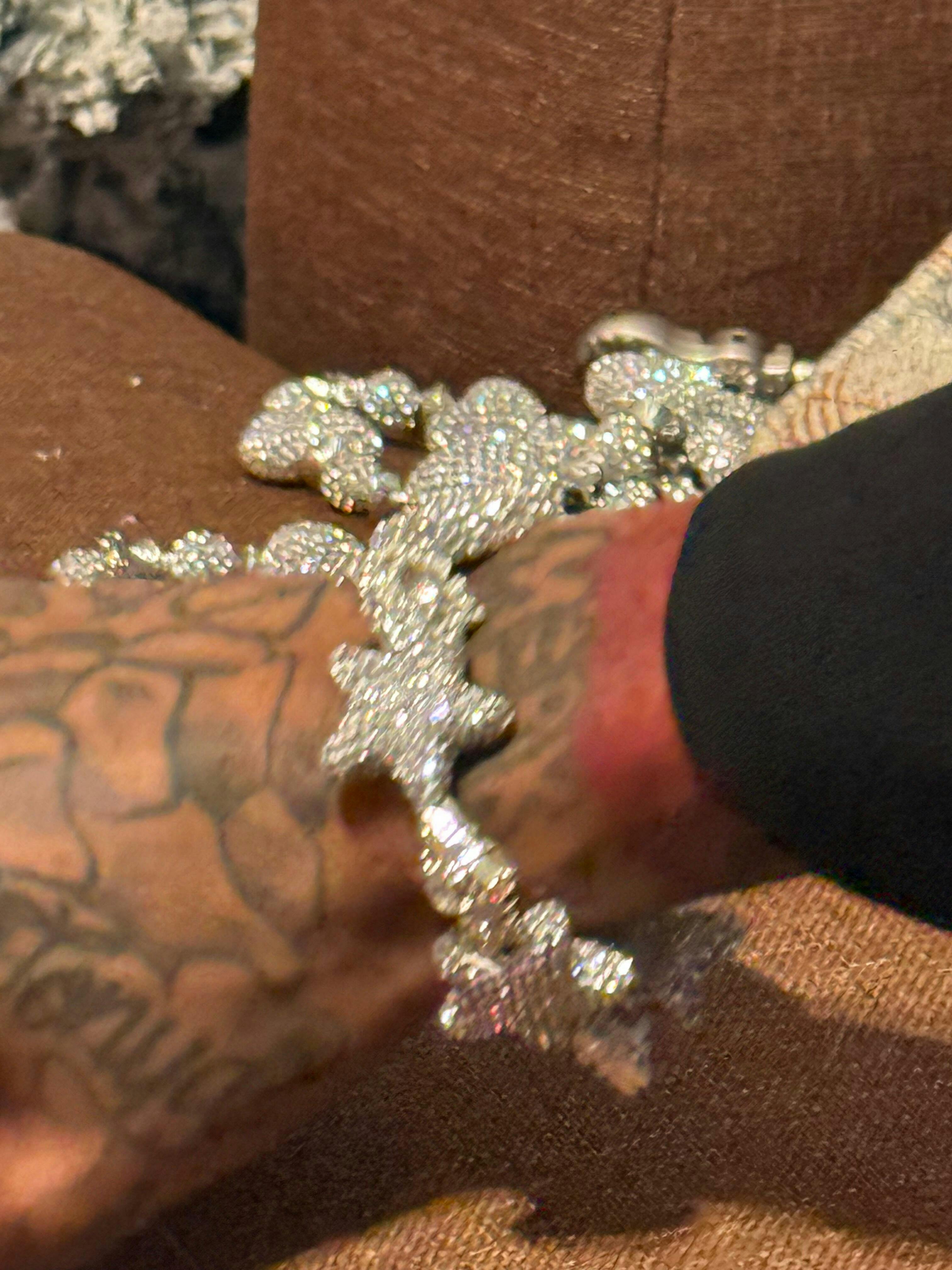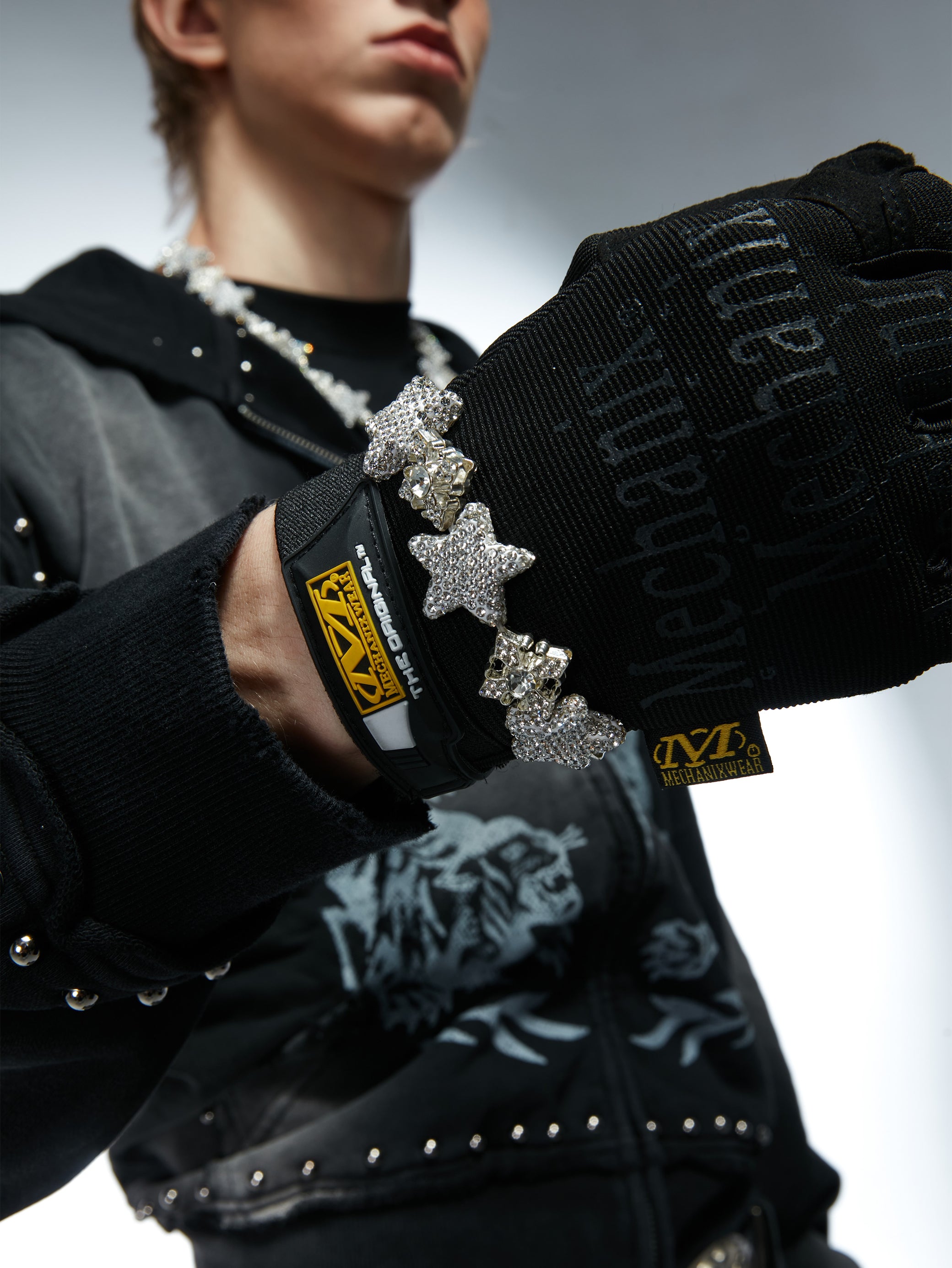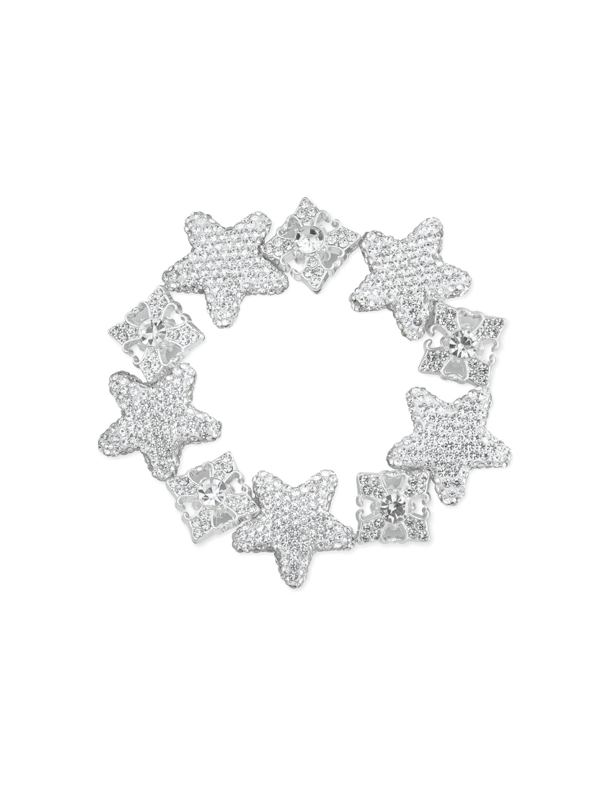 Each star-shaped link is hand-set with optical-grade resin, cut for high reflectivity and sharp shine. Link pieces are alloy-cast with a polished finish, forming a chain that balances shine, texture, and structure.