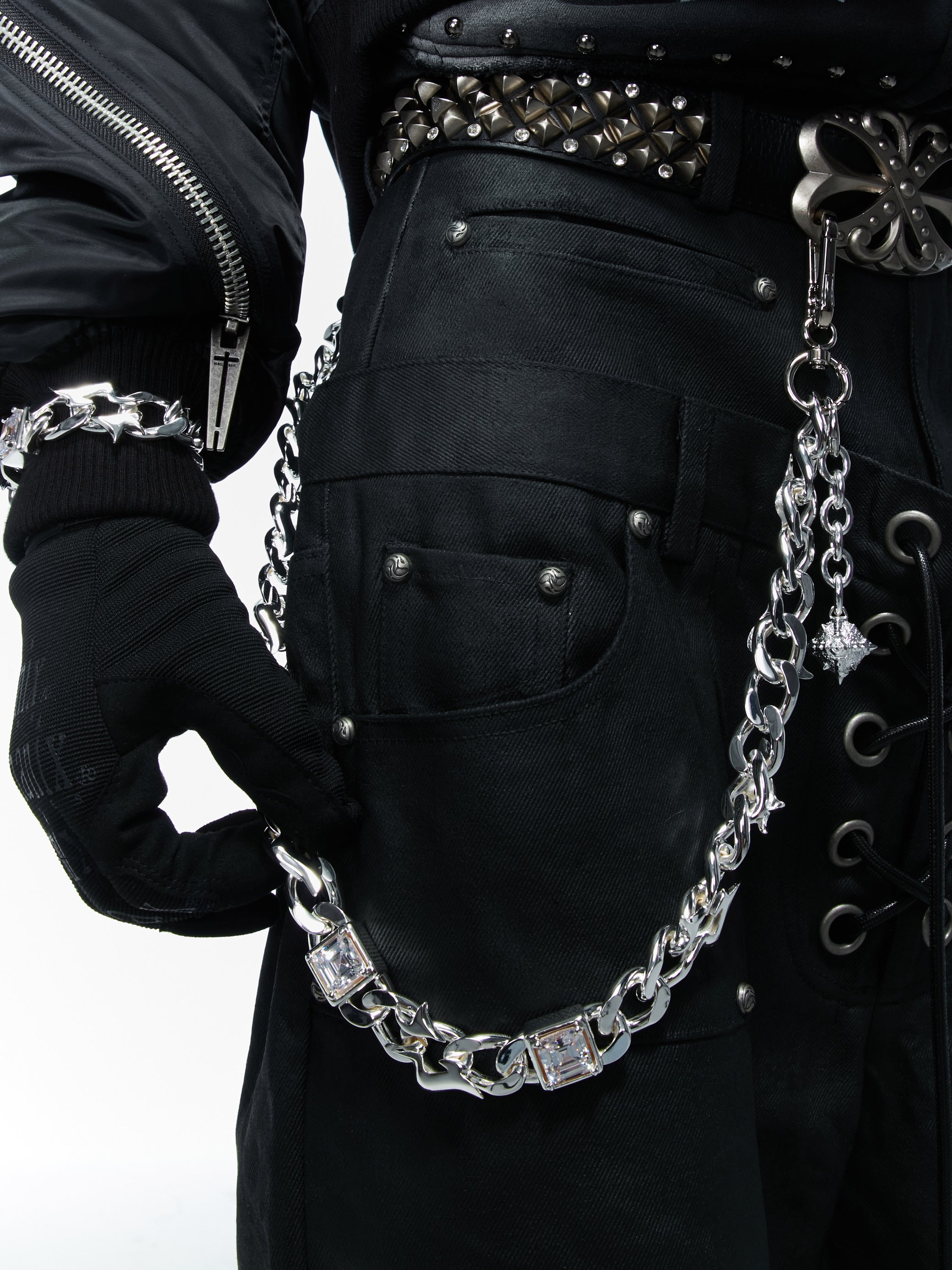 Exclusively designed by HOWSS, this piece draws its spark from the legend of the Tesseract—once the key to bending space and time, and the weapon Thanos used to hunt the Infinity Stones. We took one stone, replicated it into three, and created the Tesseract Pants Chain Series.