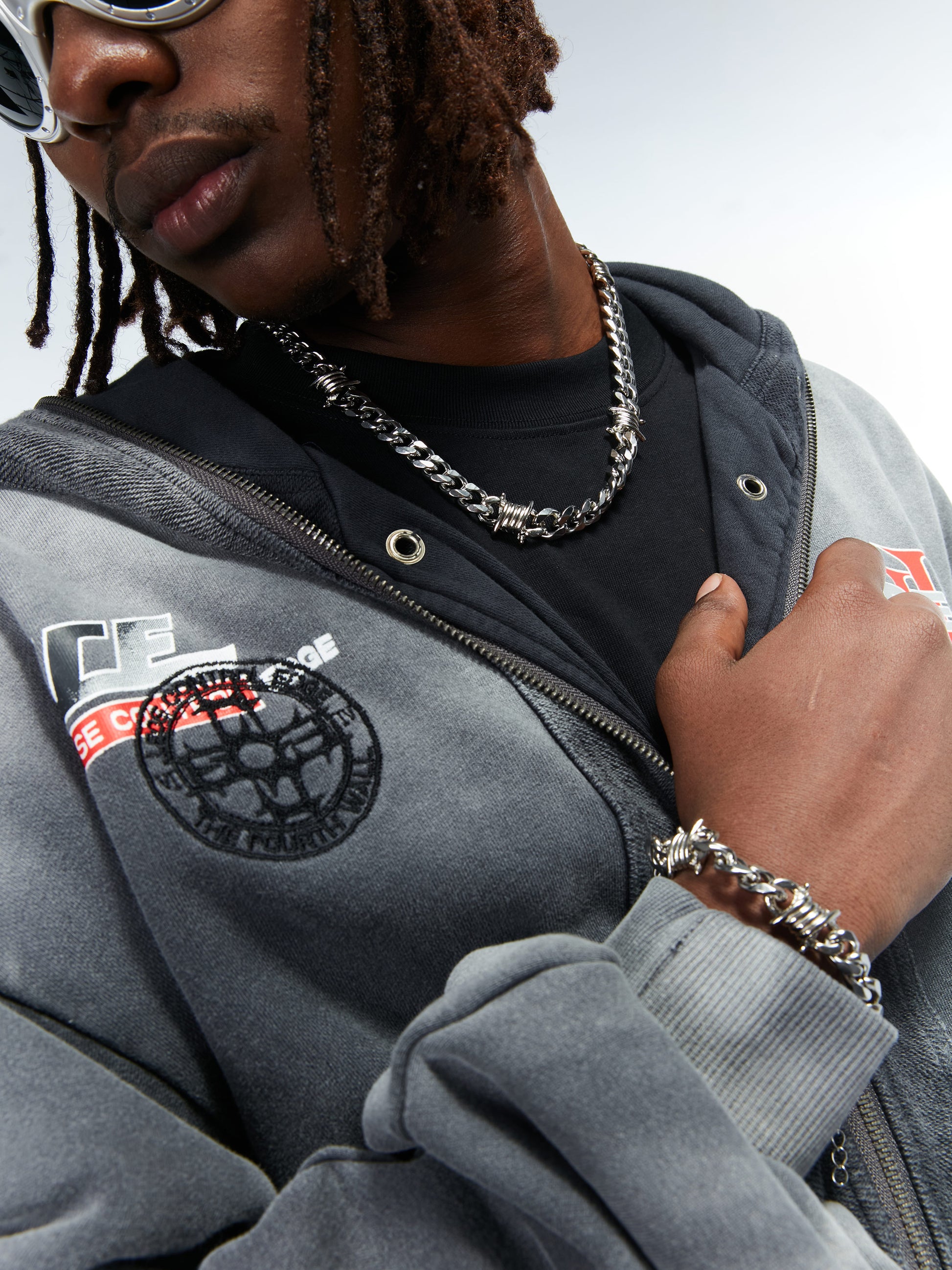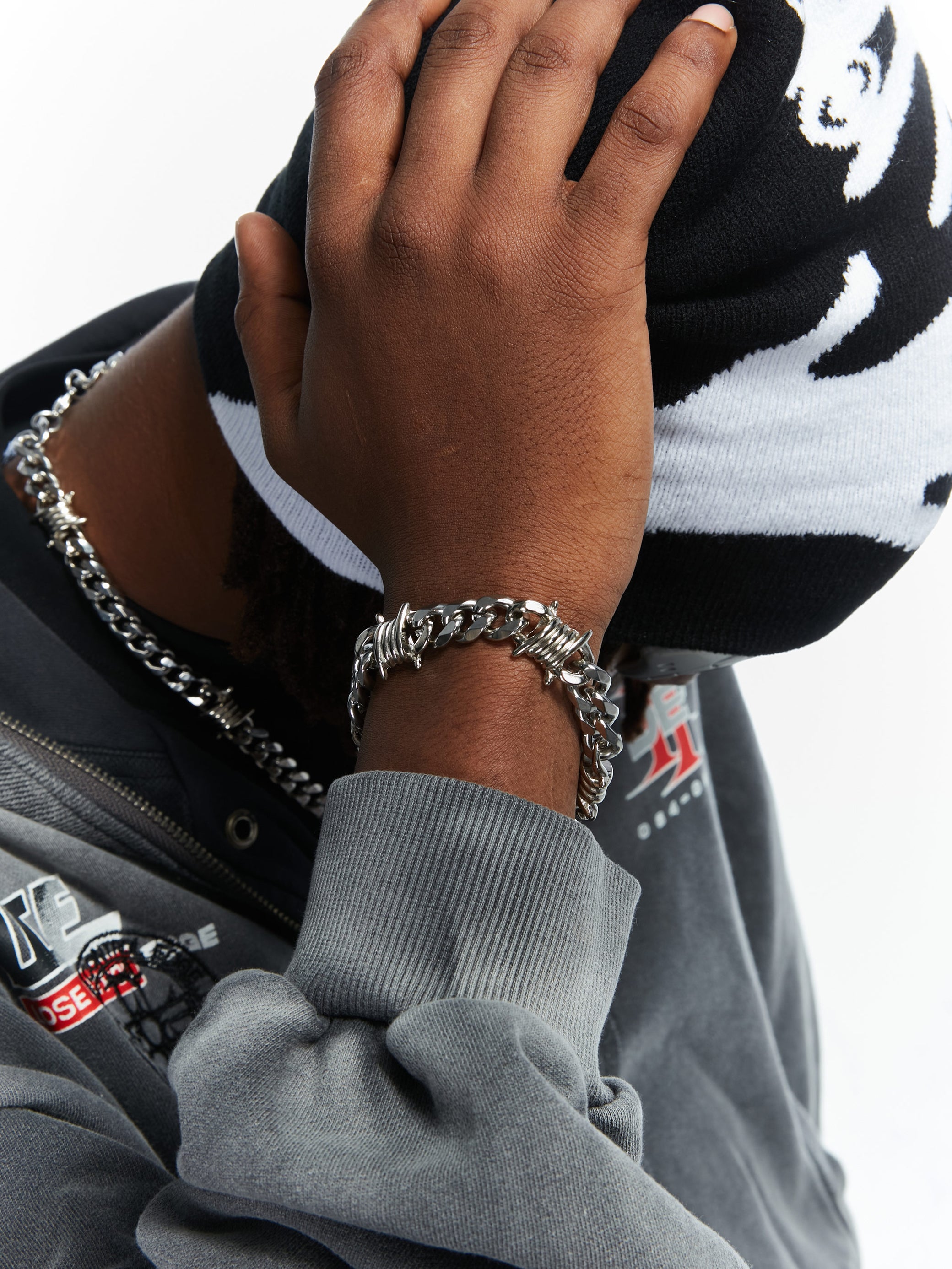 This bracelet is handmade of high-quality titanium steel and is exclusively designed by HOWSS. It is rust-proof, anti-oxidation, anti-wear and maintenance-free. Its design combines classic street symbols with modern design style. The multi-section chain is dotted with thorn locks, showing a light and rebellious vitality.